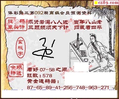 2022年092期牛彩网体彩P3画迷图谜汇总分享