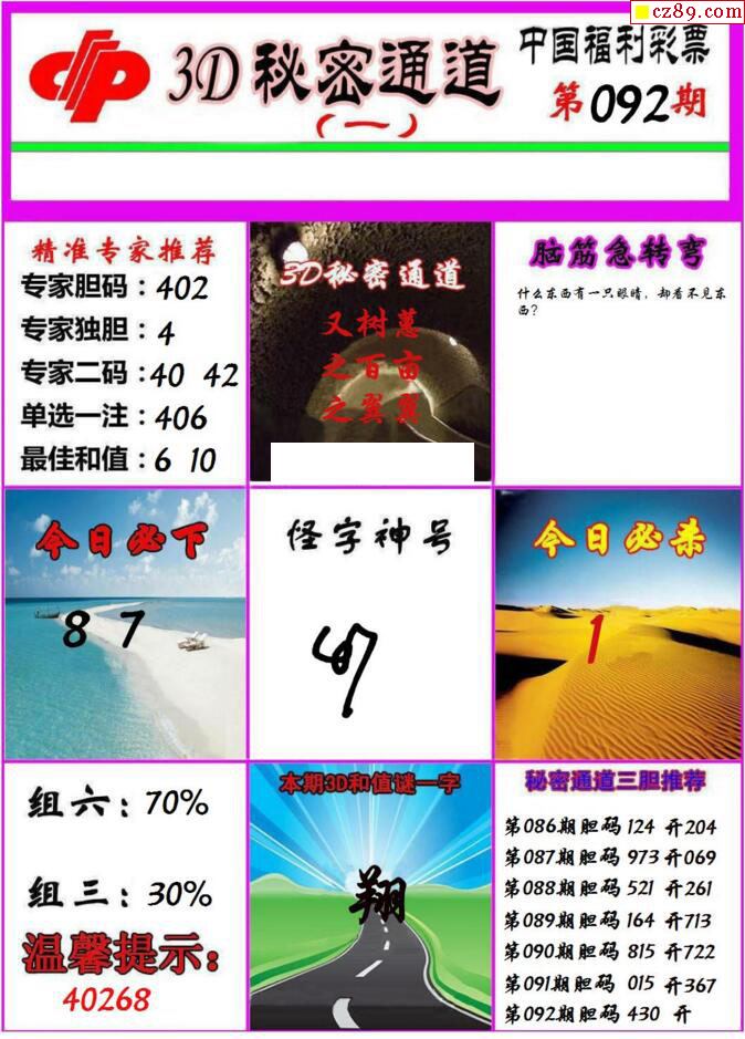 牛彩版3D字谜彩报图25年337期打印版