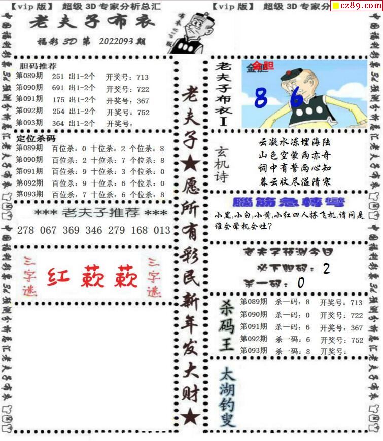 福彩3D2025334期 祁连牧哥百财纳福胆码图谜推荐
