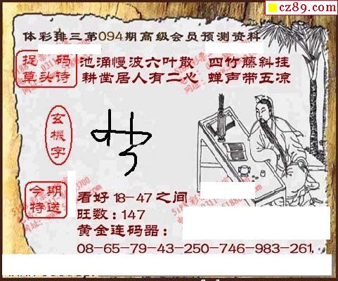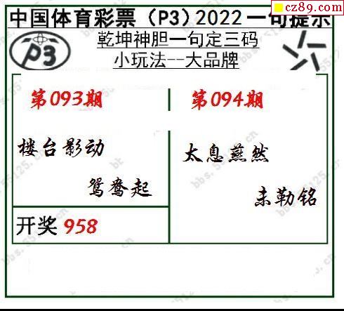 2022年094期牛彩网体彩P3画迷图谜汇总分享
