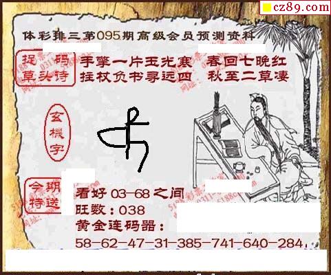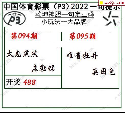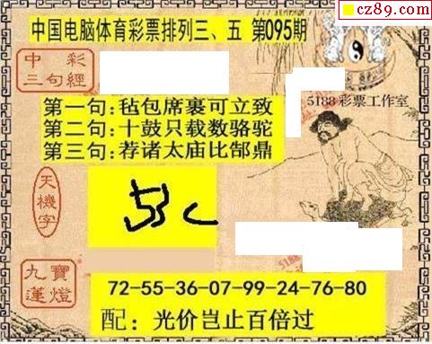 2022年095期牛彩网体彩P3画迷图谜汇总分享