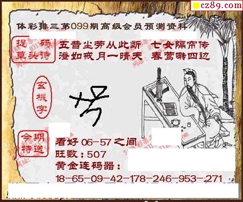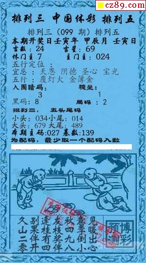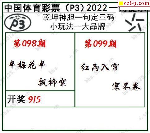 2022年099期牛彩网体彩P3画迷图谜汇总分享