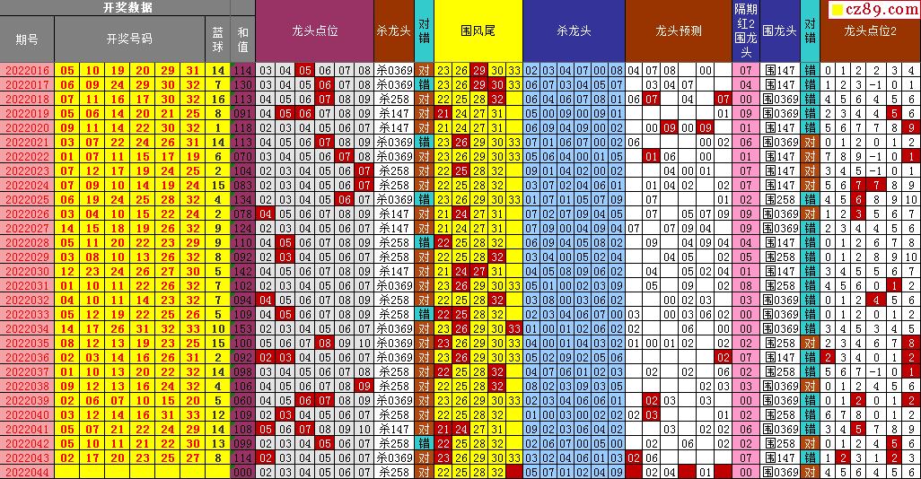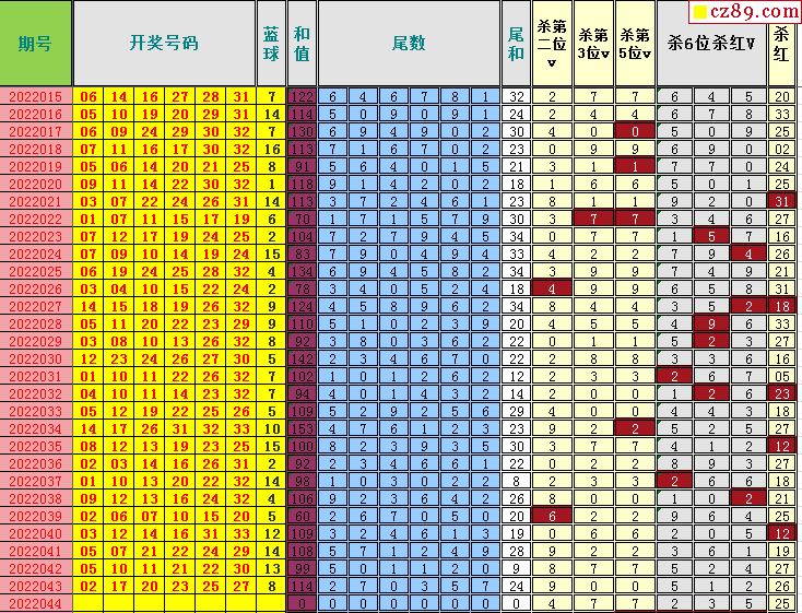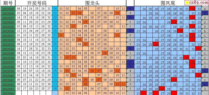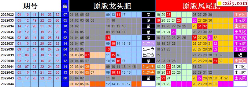 22年044期飞向阳光双色球龙头凤尾图表汇总