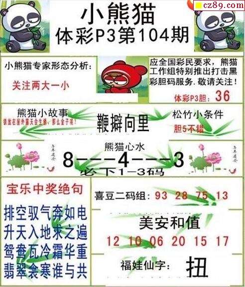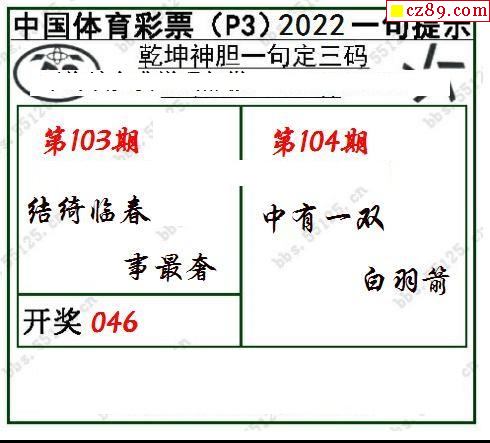 2022年104期牛彩网体彩P3画迷图谜汇总分享