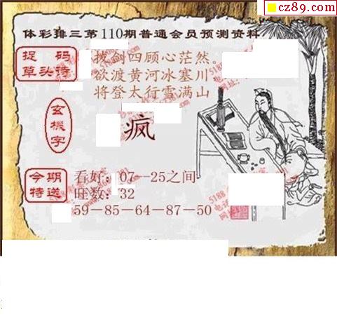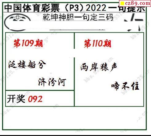 2022年110期牛彩网体彩P3画迷图谜汇总分享
