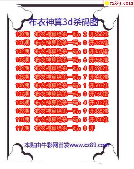 牛彩版3D预测彩报图25年333期打印版