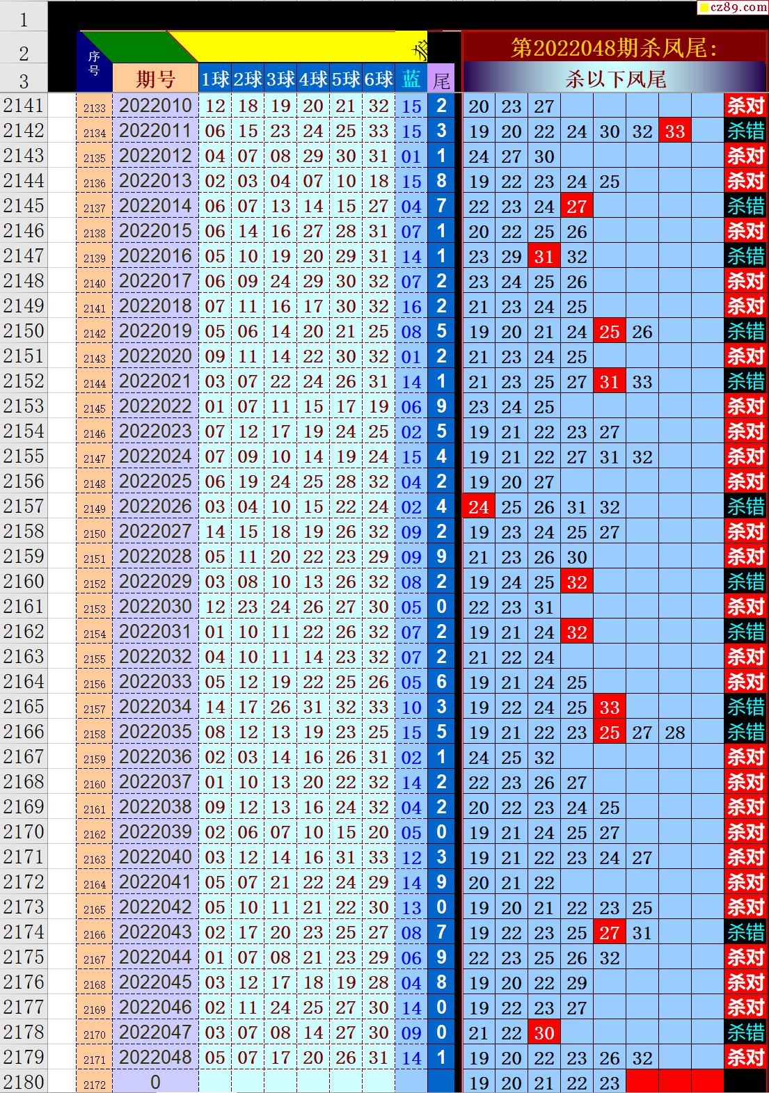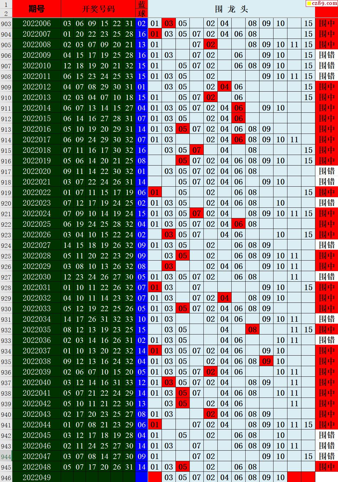 22年049期秋雨龙头凤尾走势图表