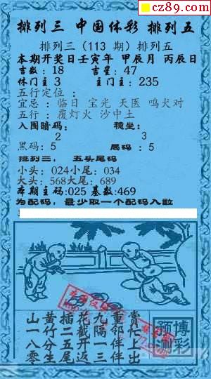 2022年113期牛彩网体彩P3画迷图谜汇总分享