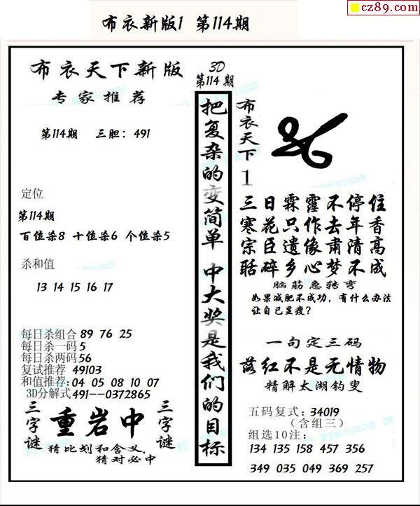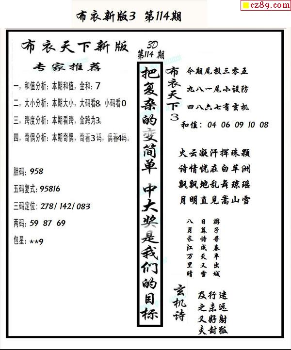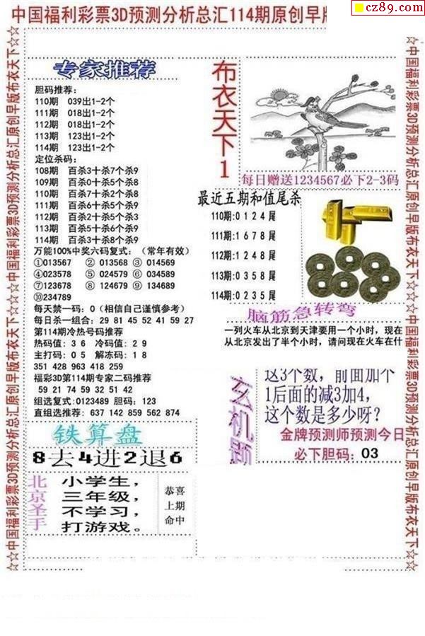 早版布衣2025331期3d图谜