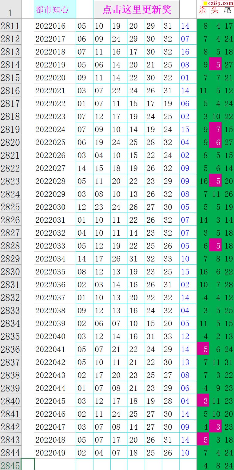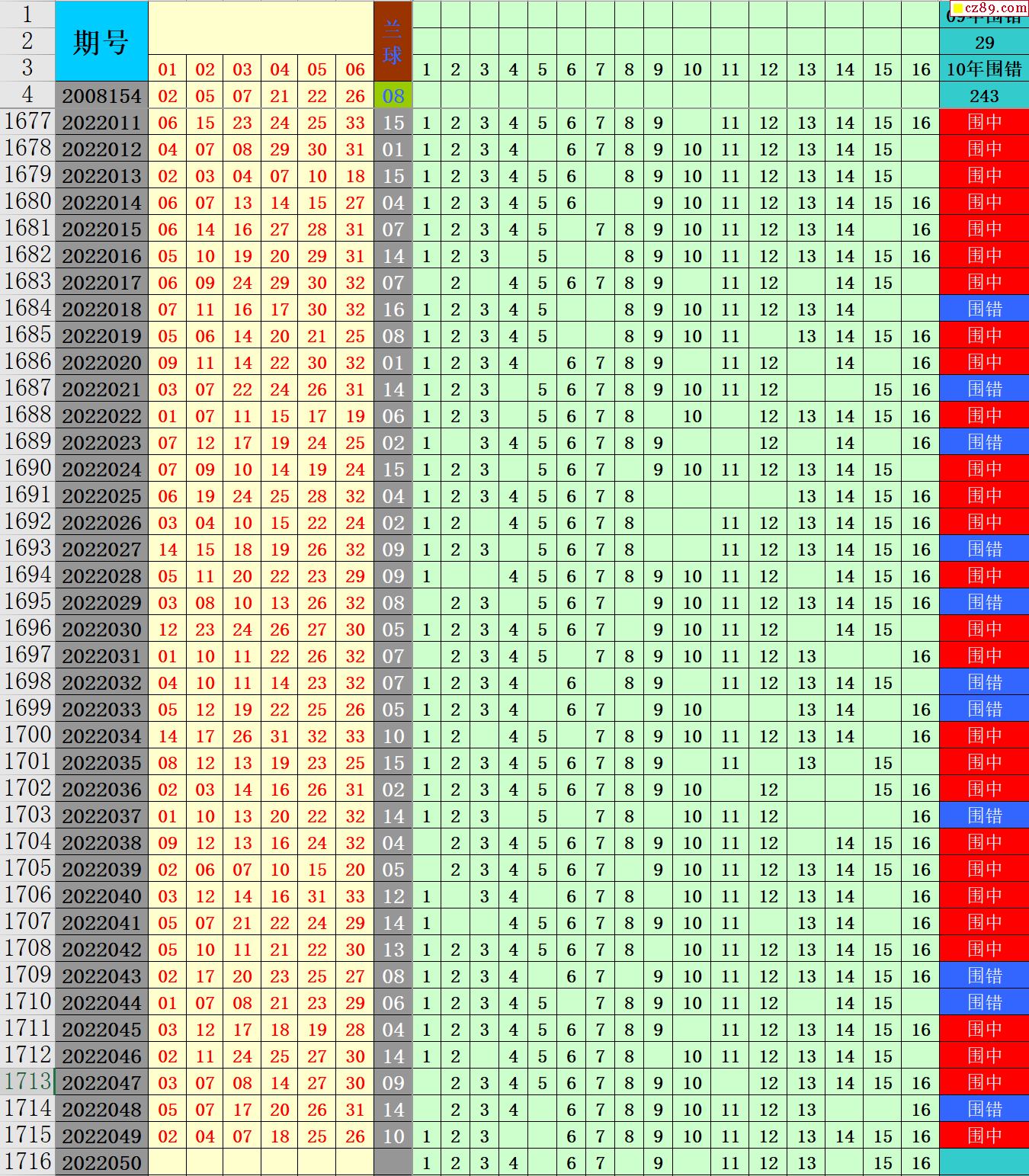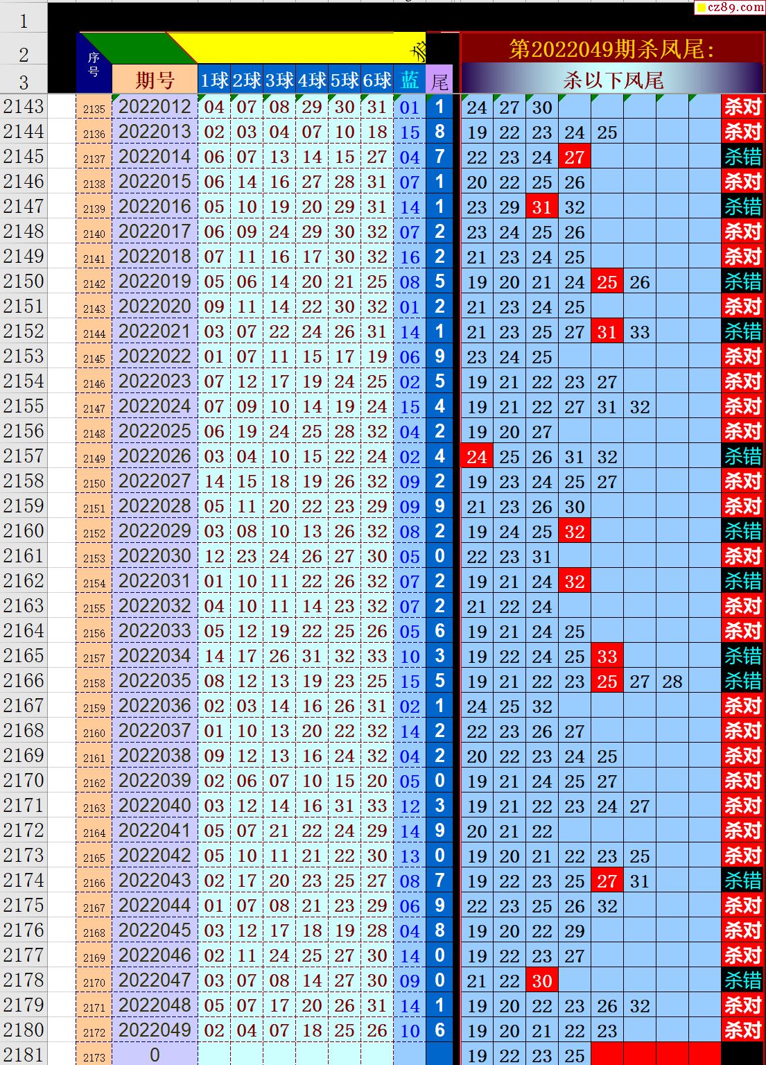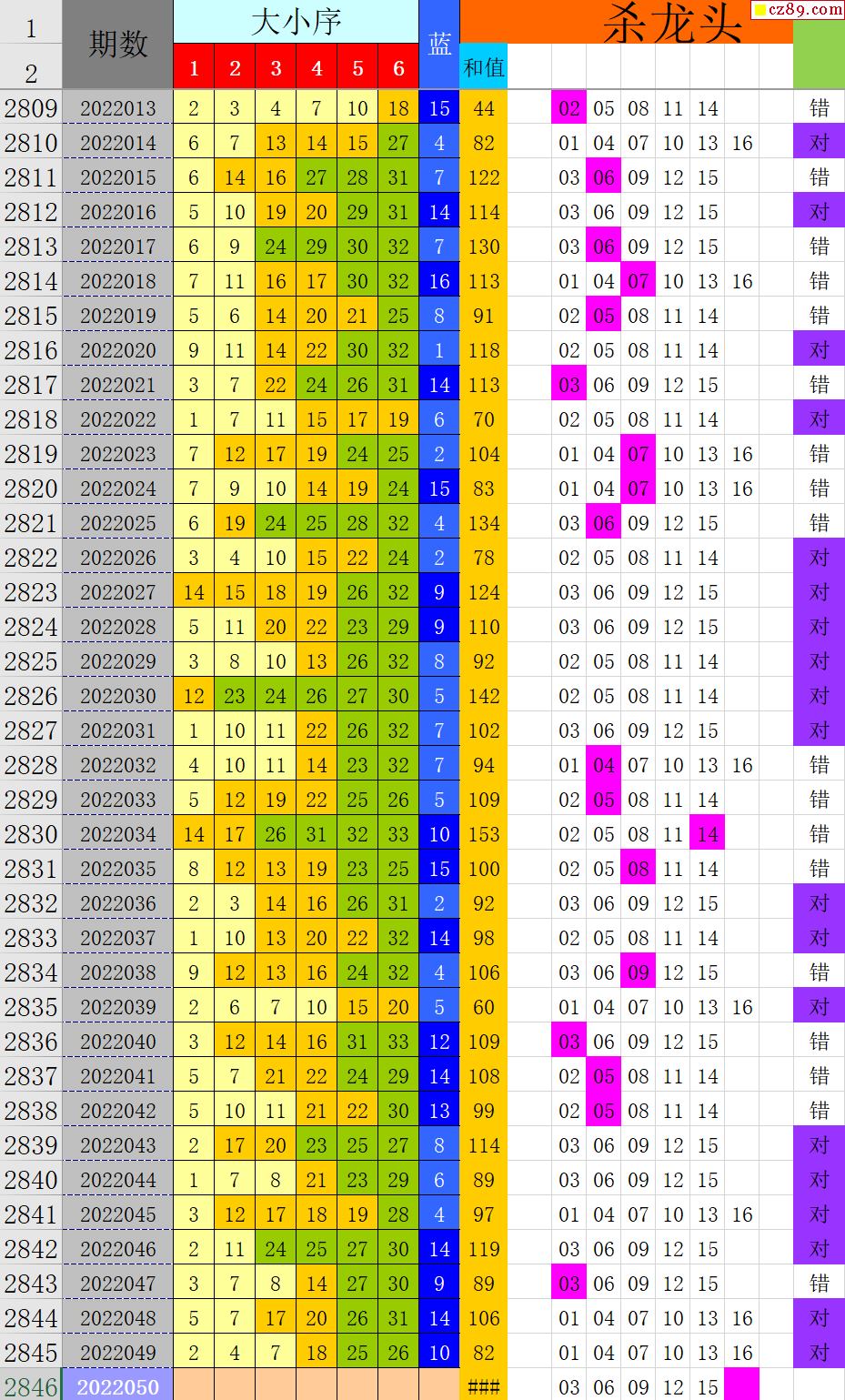 22年050期秋雨龙头凤尾走势图表