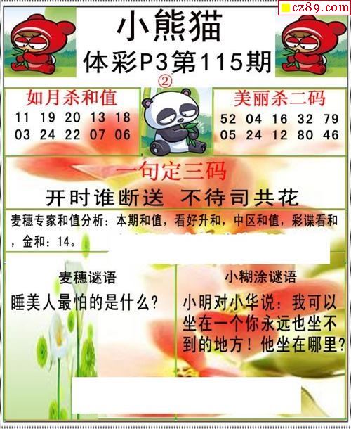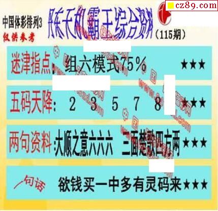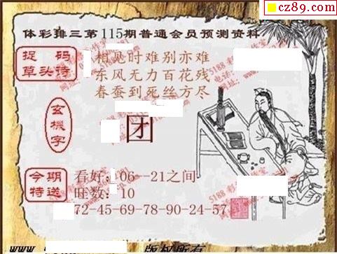 2022年115期牛彩网体彩P3画迷图谜汇总分享