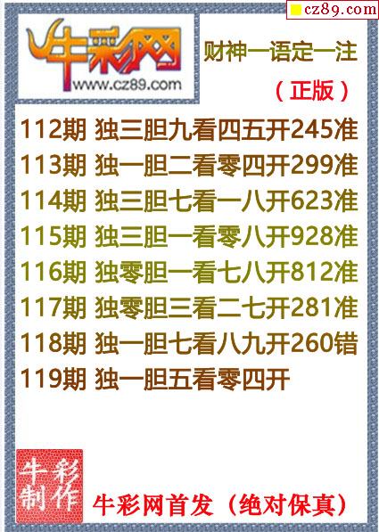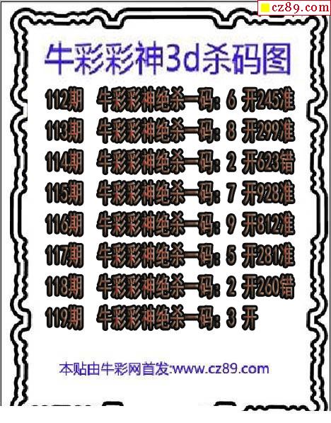 牛彩版3D预测彩报图25年332期打印版