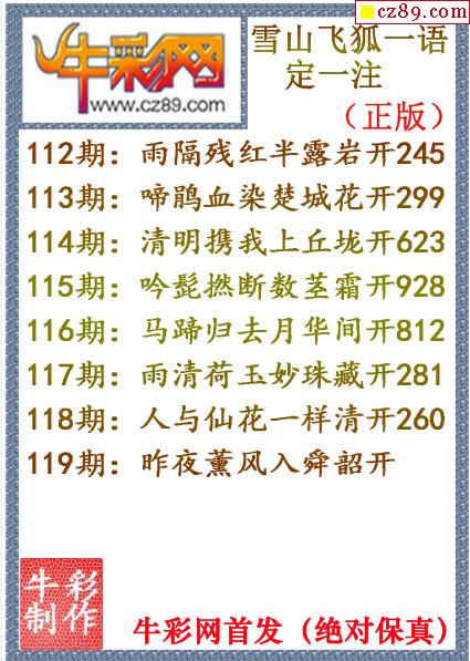 牛彩版3D字谜彩报图25年332期打印版