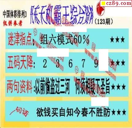2022年123期牛彩网体彩P3画迷图谜汇总分享