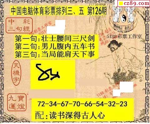2022年126期牛彩网体彩P3画迷图谜汇总分享