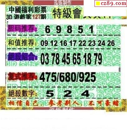 2025330期福彩3D图谜汇总