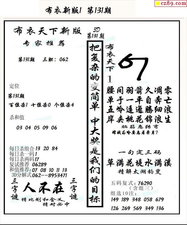 2025330期真精华布衣123456