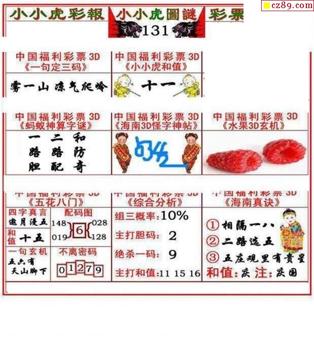 2025330期福彩3D图谜汇总
