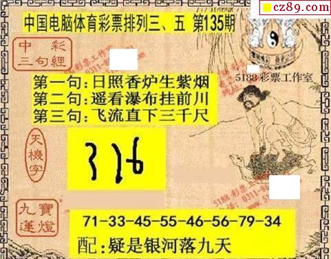 2022年135期牛彩网体彩P3画迷图谜汇总分享