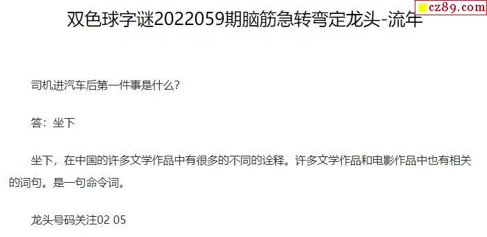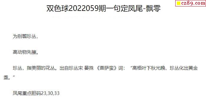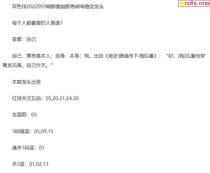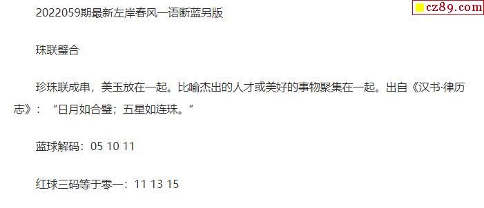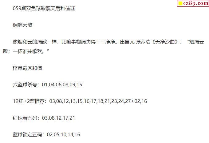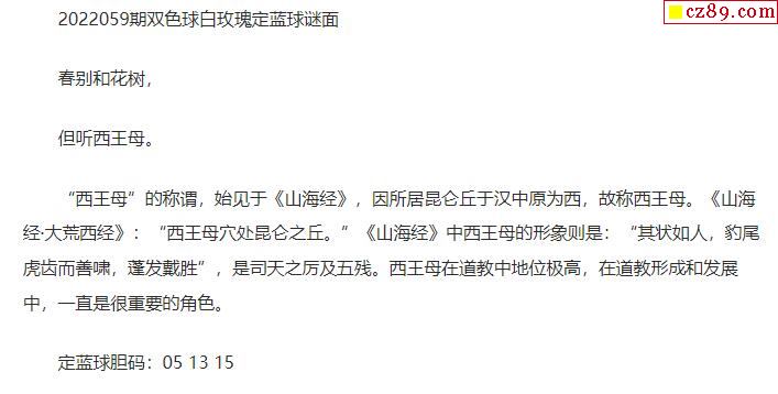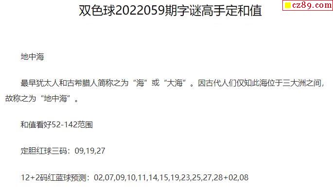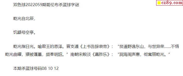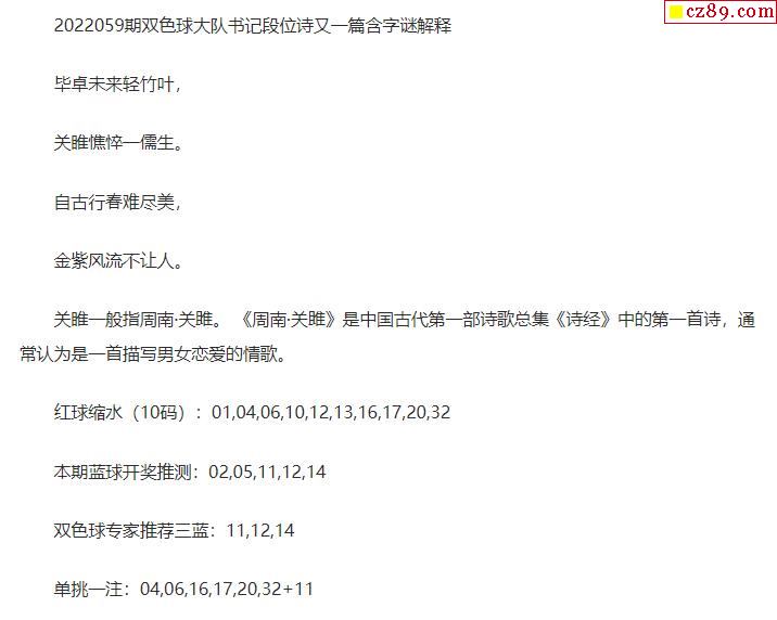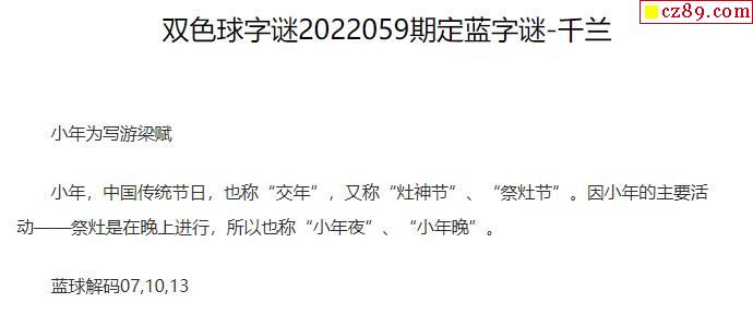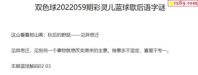 2022年059期牛彩网双色球字迷图谜汇总