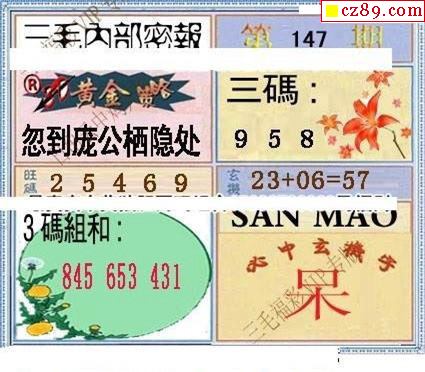 毛哥三胆2025331期3d图谜
