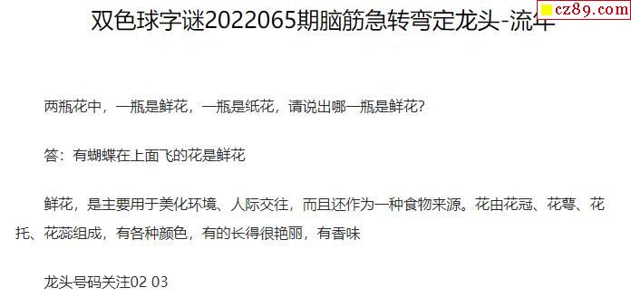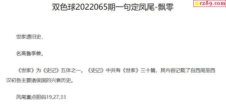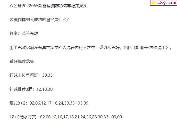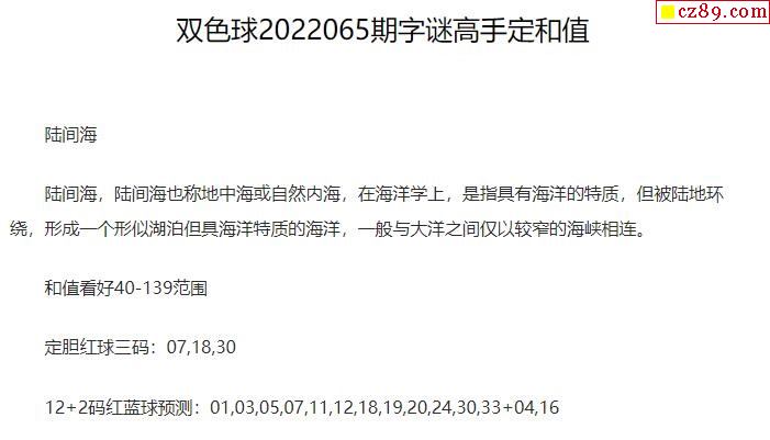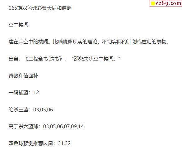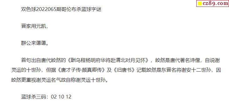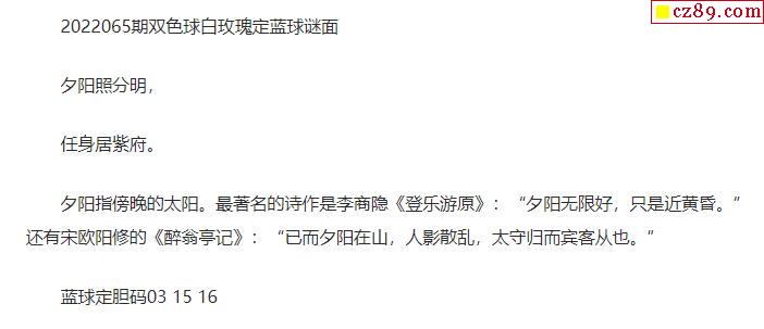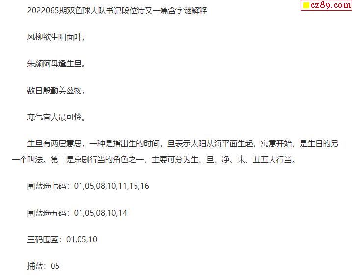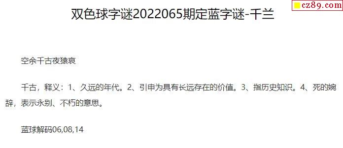 2022年065期牛彩网双色球字迷图谜汇总