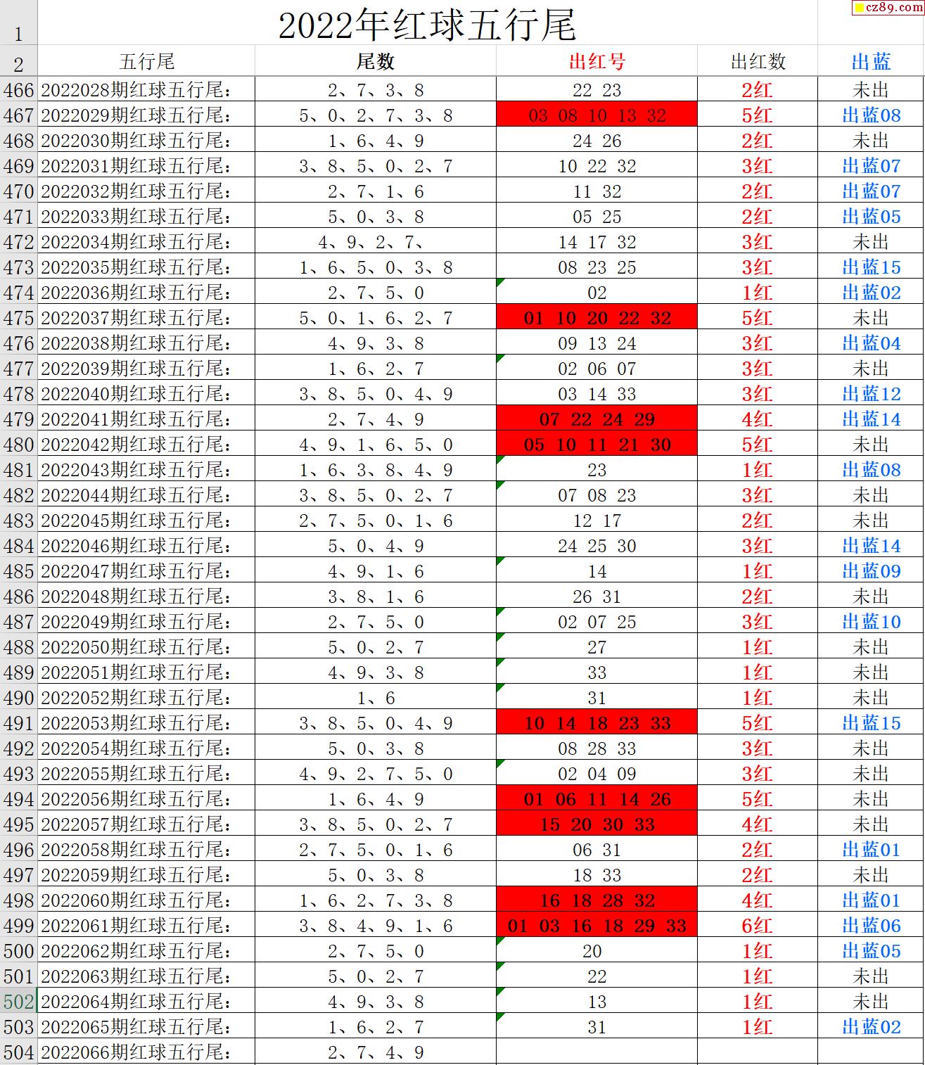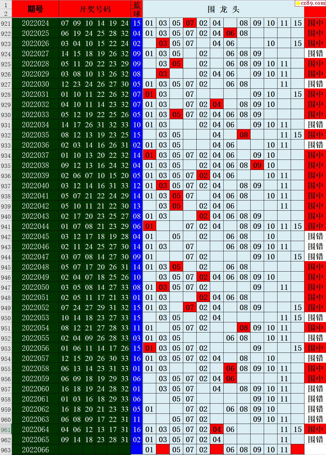 22年066期秋雨龙头凤尾走势图表