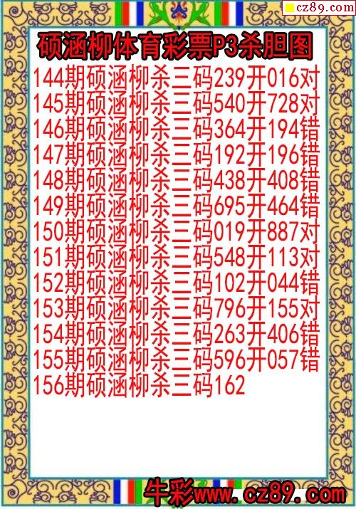 2026年070期牛彩网体彩P3画迷图谜汇总分享