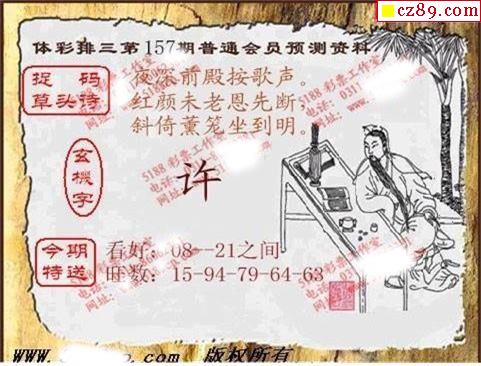 2022年157期牛彩网体彩P3画迷图谜汇总分享
