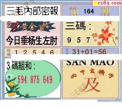 三毛图2022164期3d图谜