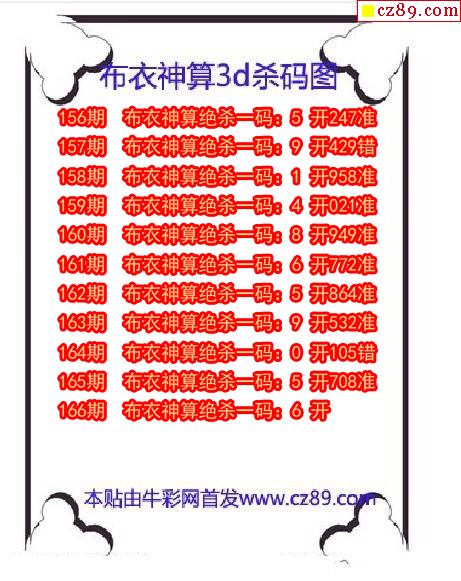 牛彩版3D预测彩报图25年334期打印版