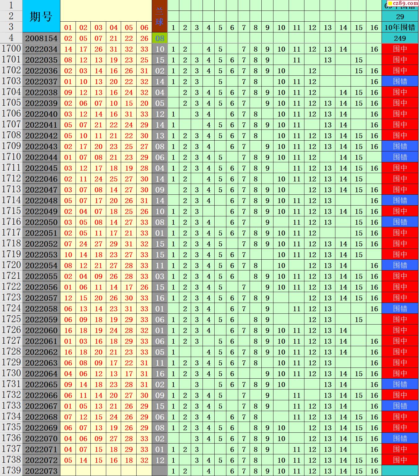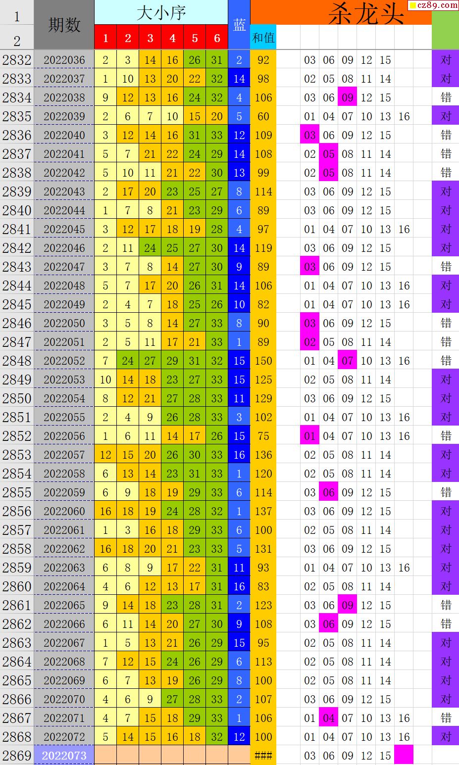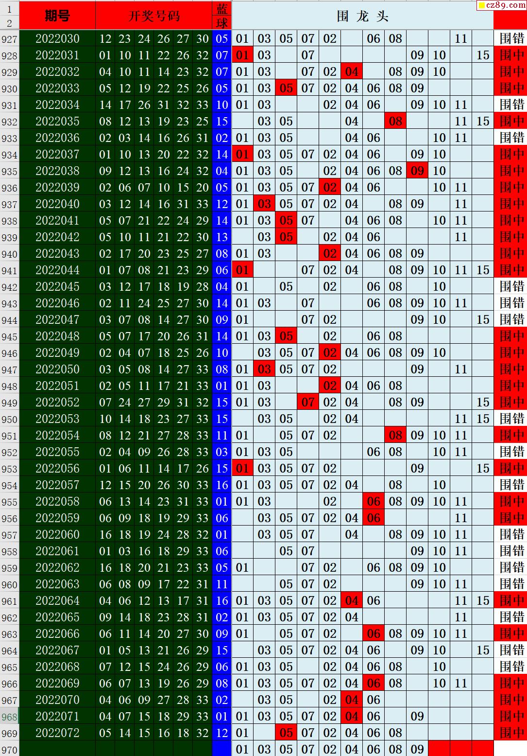 22年073期秋雨龙头凤尾走势图表