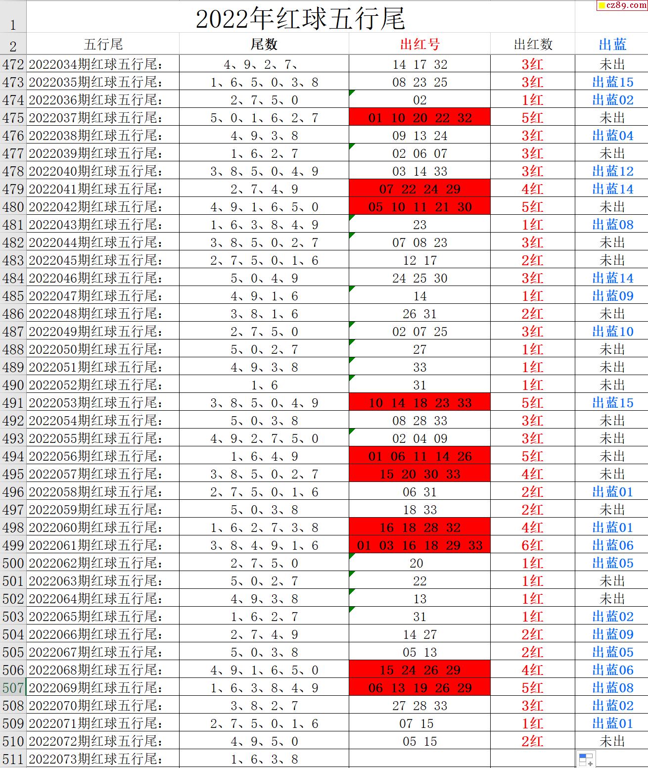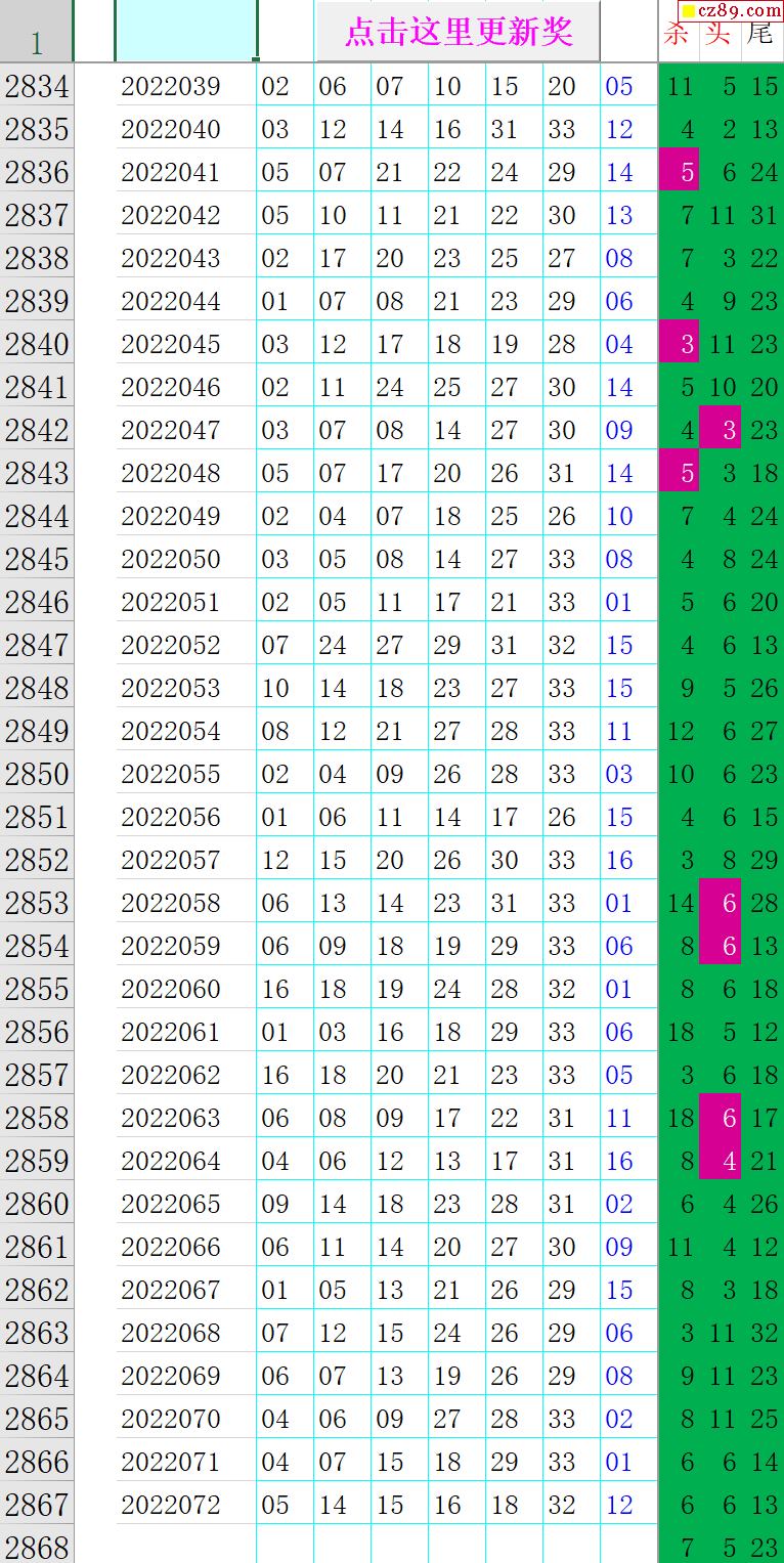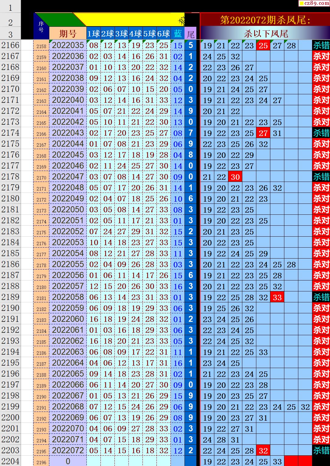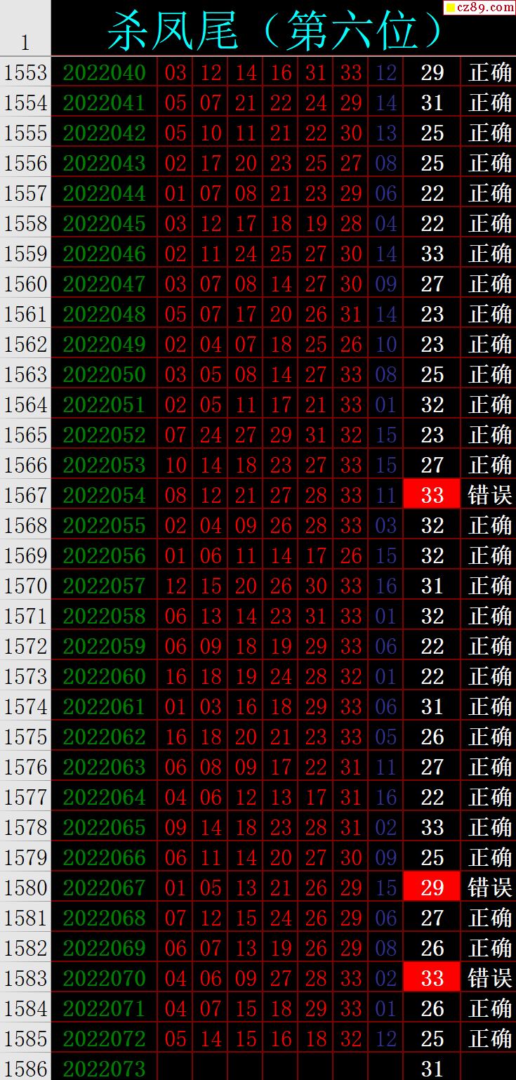 22年073期秋雨龙头凤尾走势图表