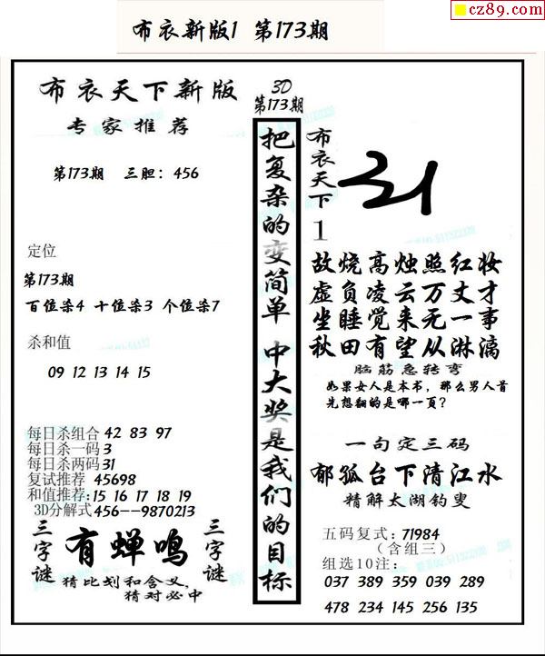 2022173期3d字谜图谜总汇