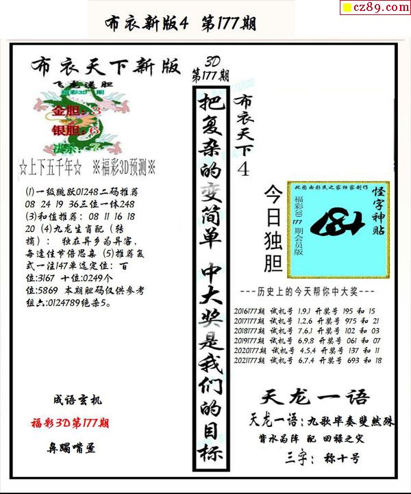 牛彩版3D字谜彩报图25年334期打印版
