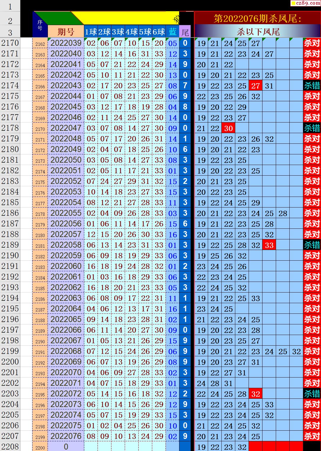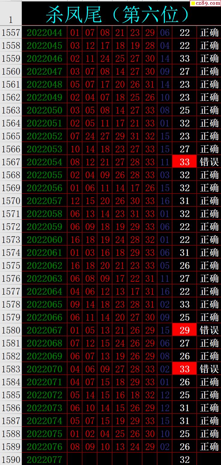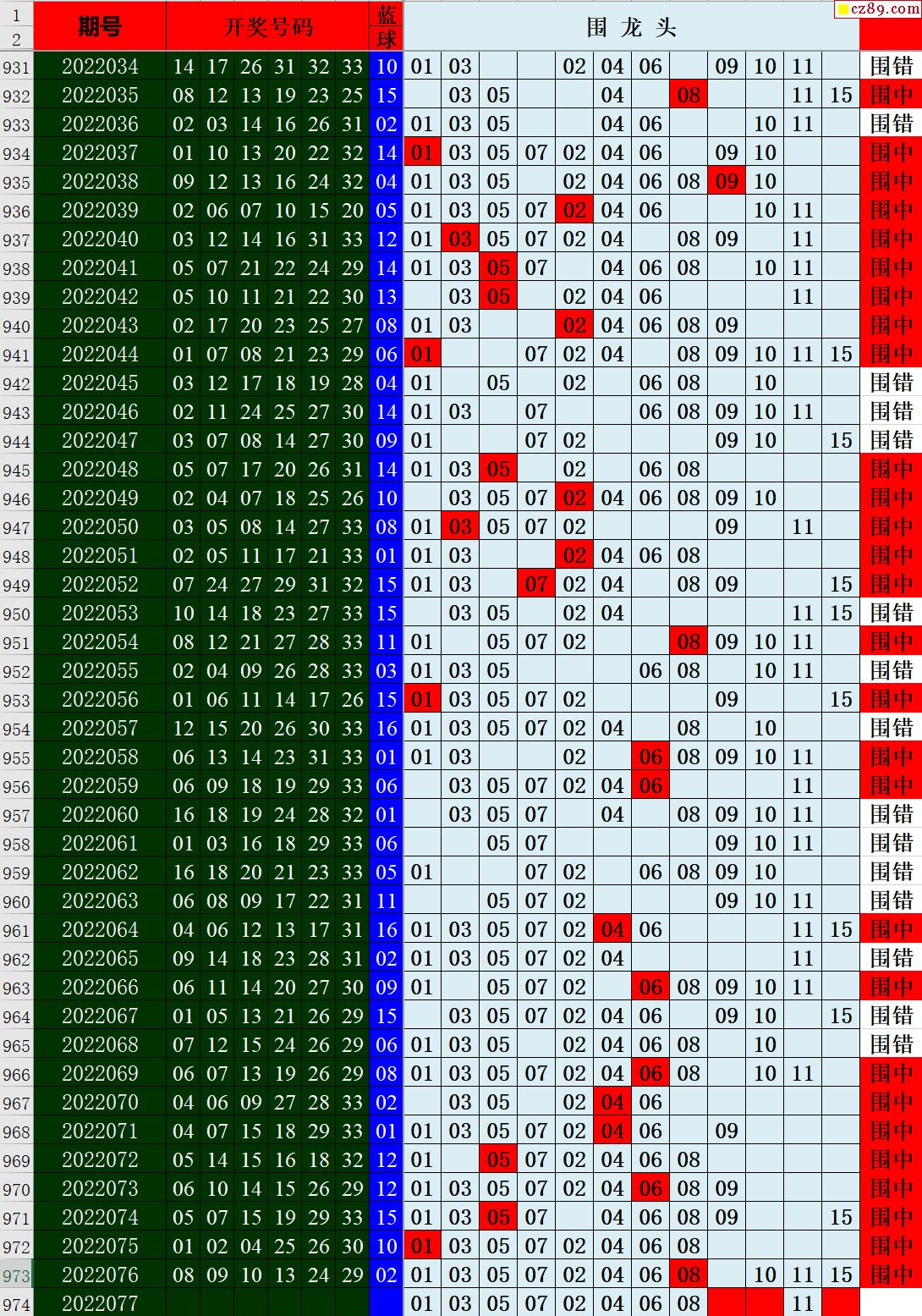 22年077期秋雨龙头凤尾走势图表
