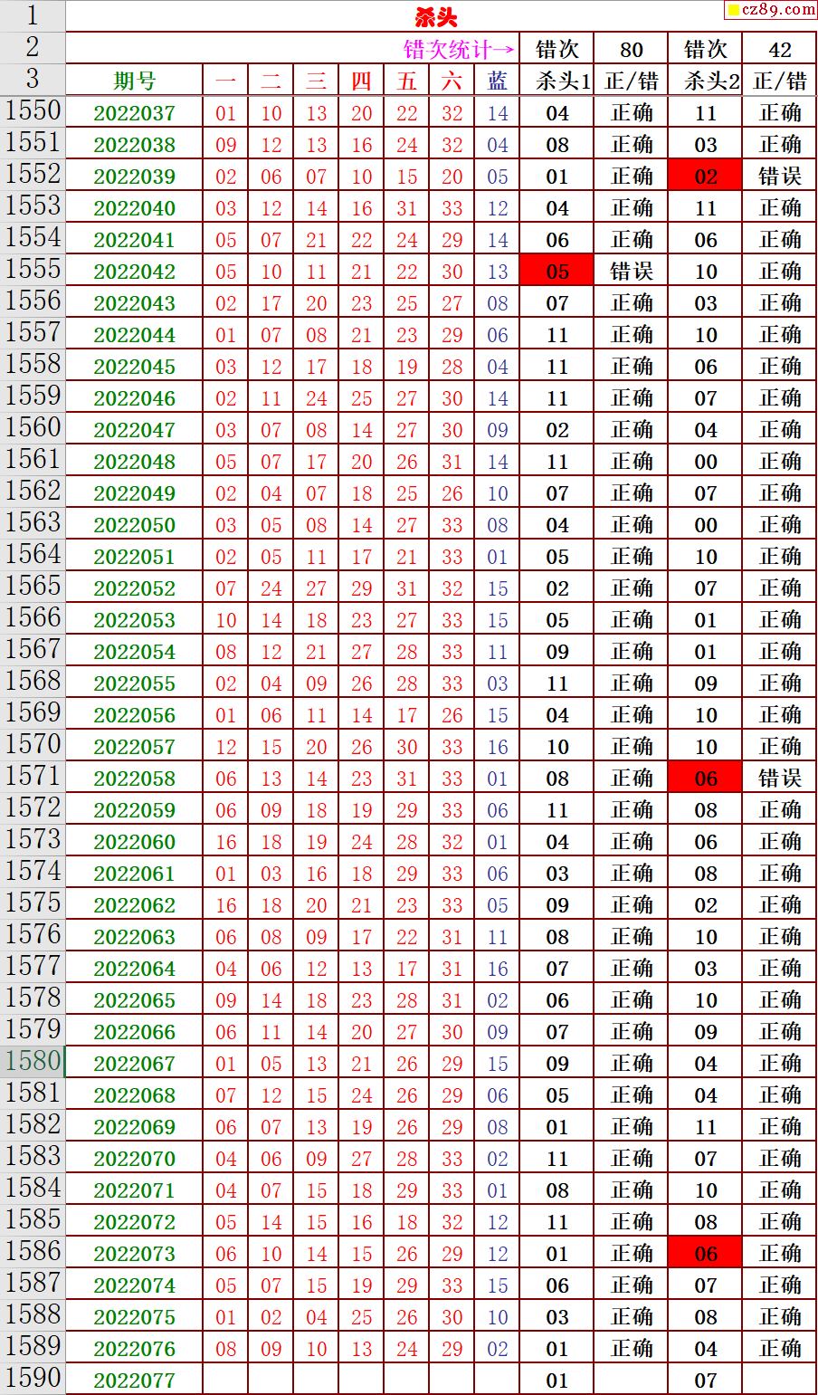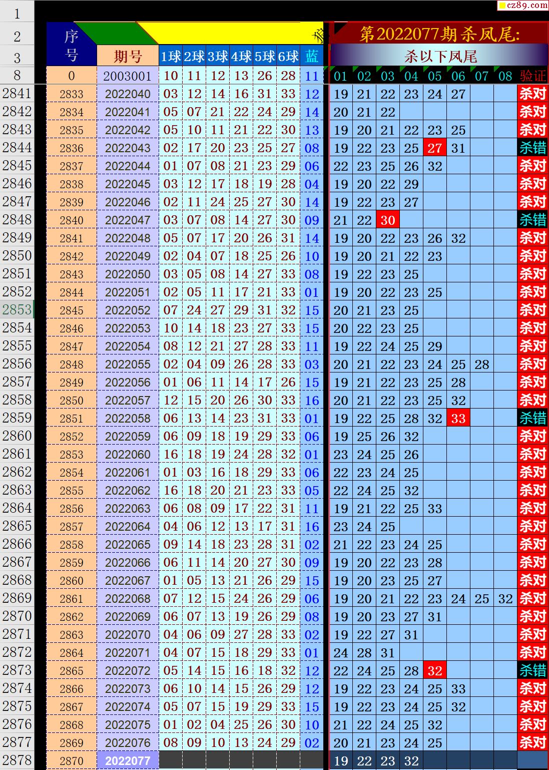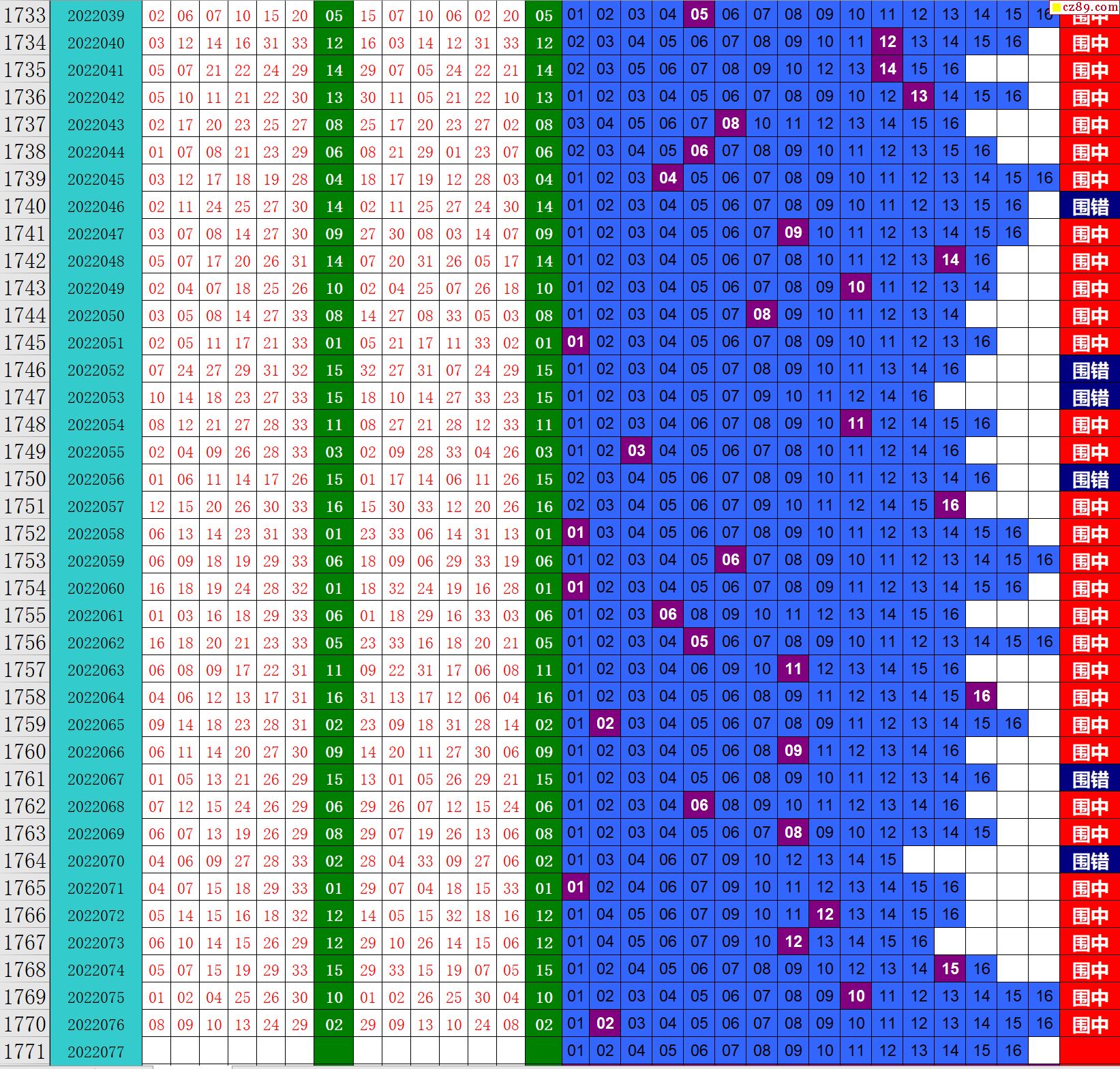 22年077期秋雨龙头凤尾走势图表