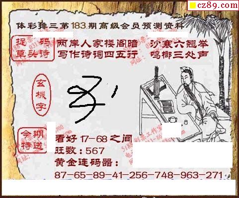 2022年183期牛彩网体彩P3画迷图谜汇总分享
