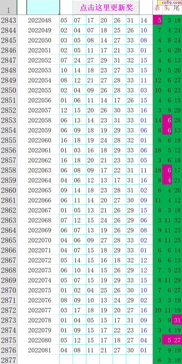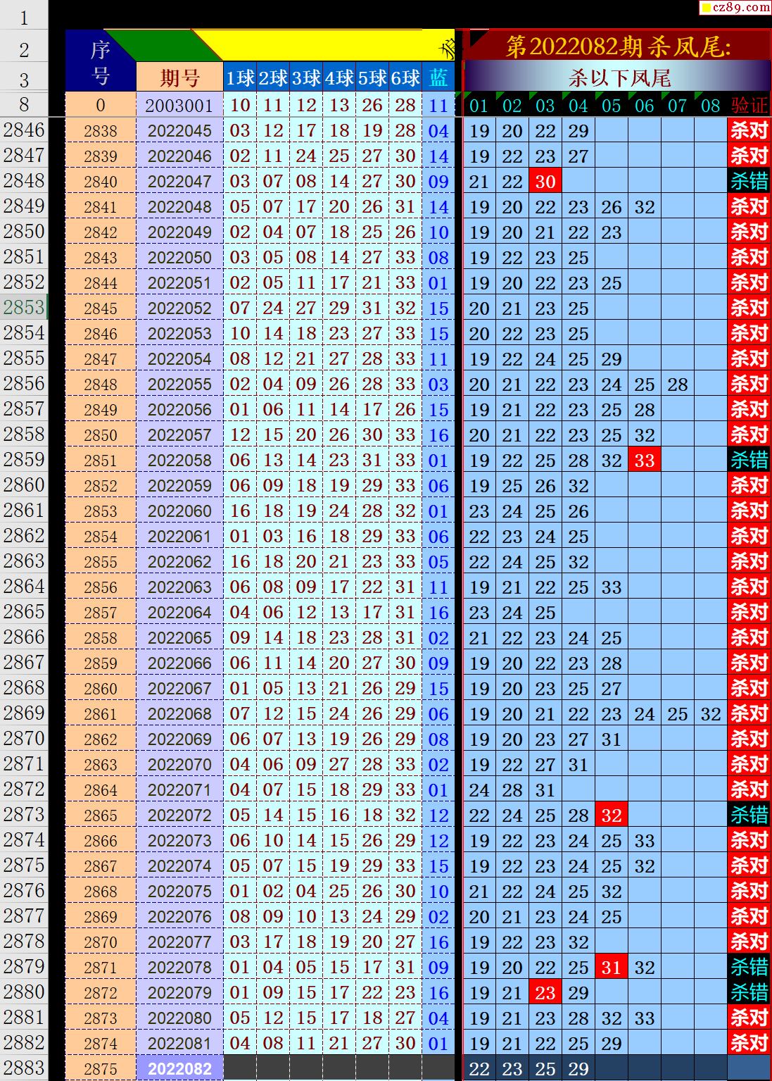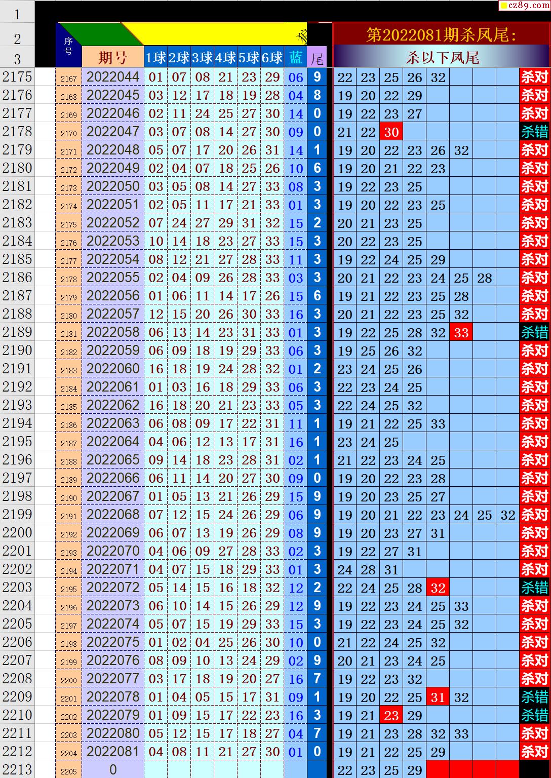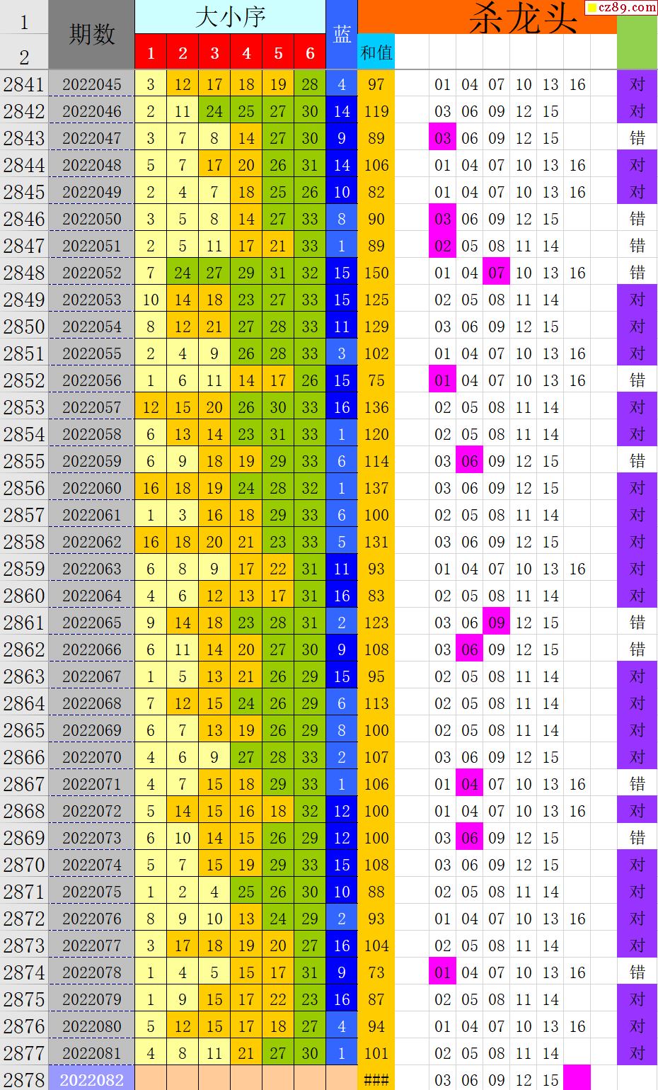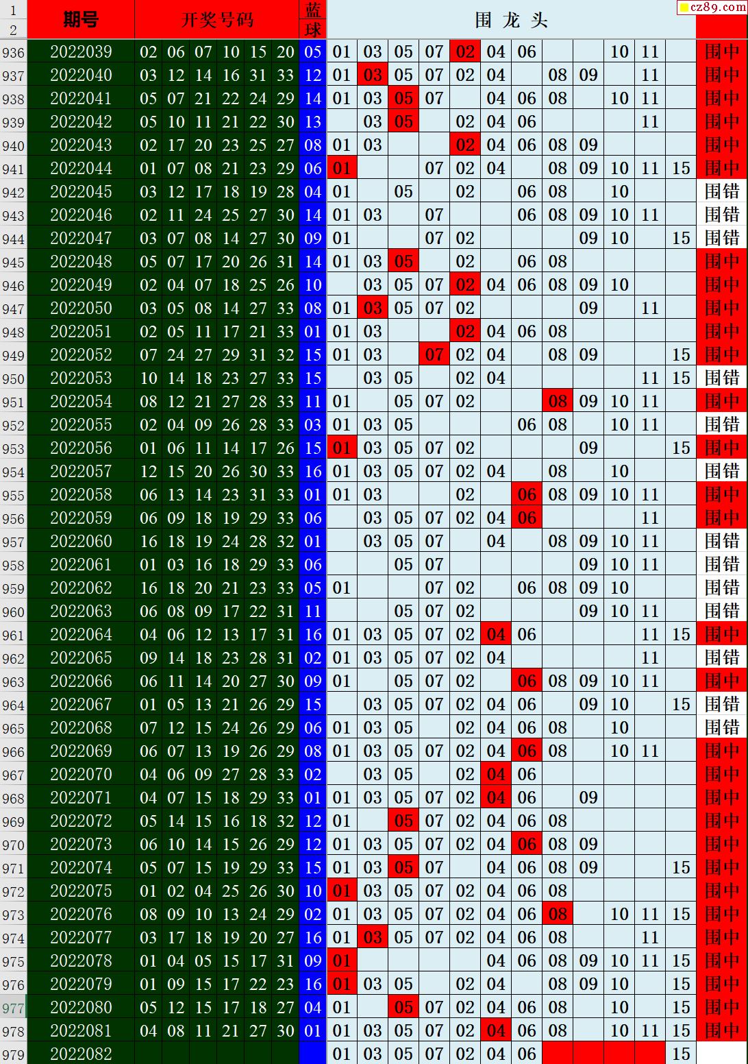 22年082期秋雨龙头凤尾走势图表