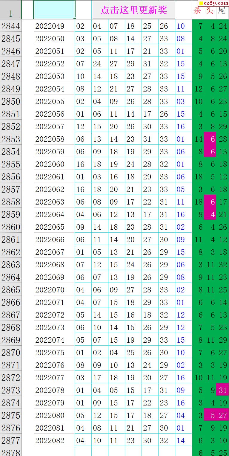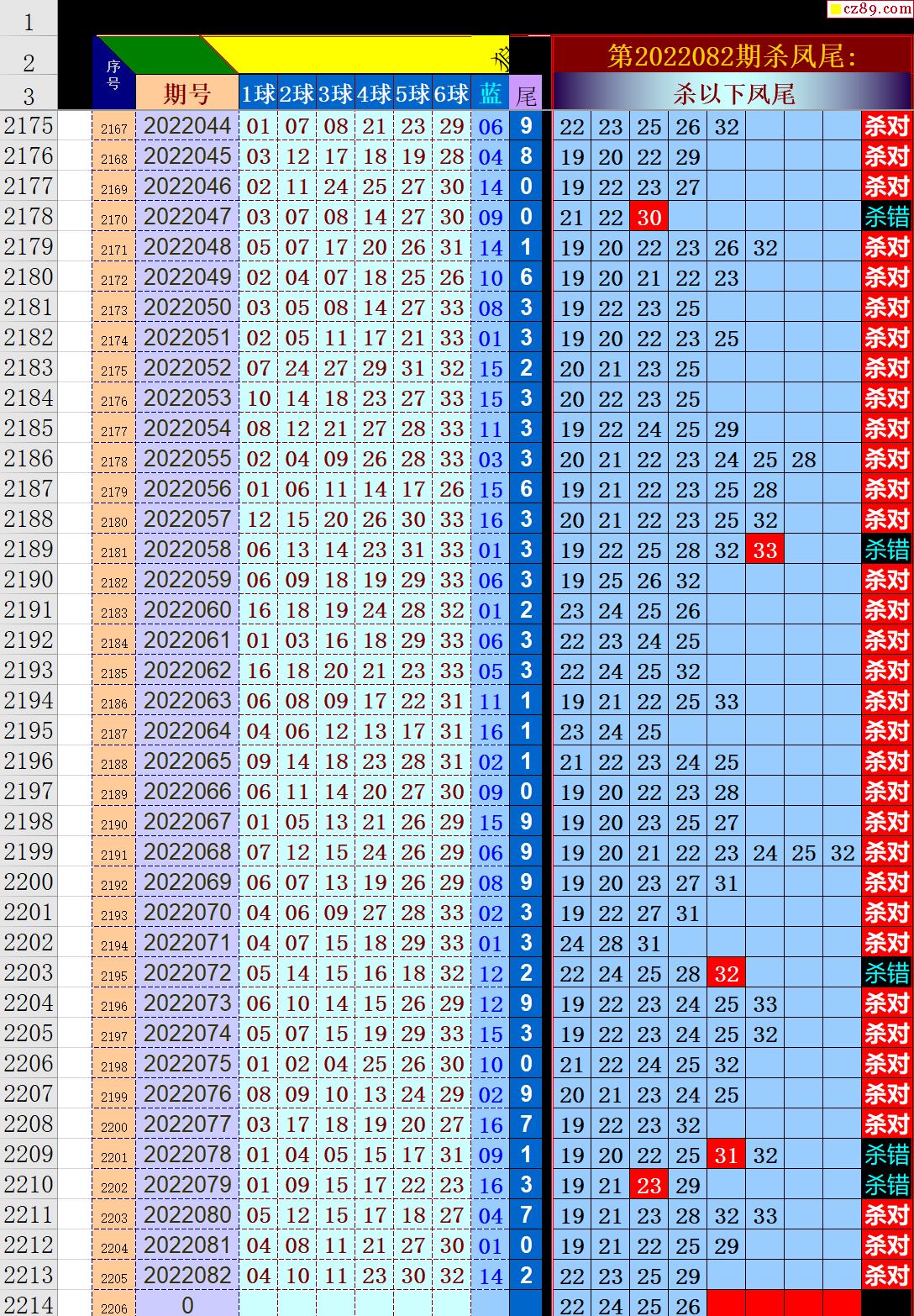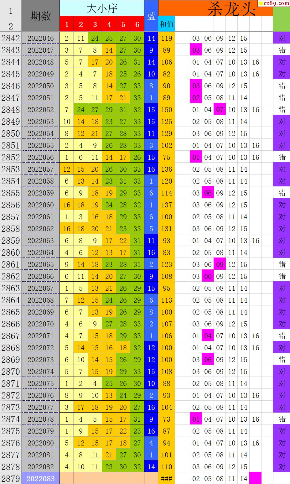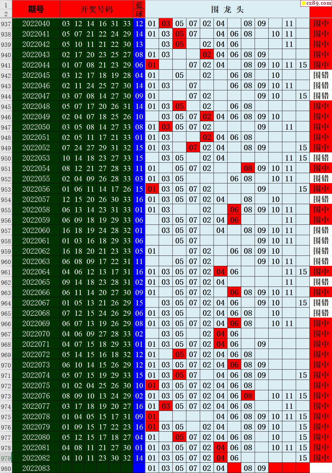 22年083期秋雨龙头凤尾走势图表