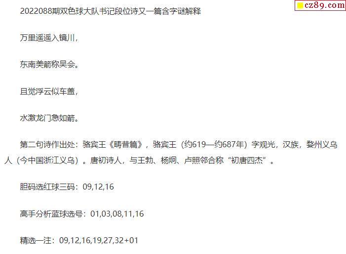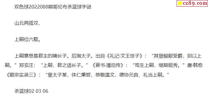 2022年088期牛彩网双色球字迷图谜汇总