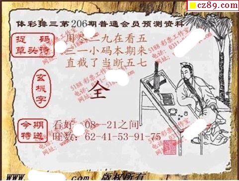 2022年206期牛彩网体彩P3画迷图谜汇总分享