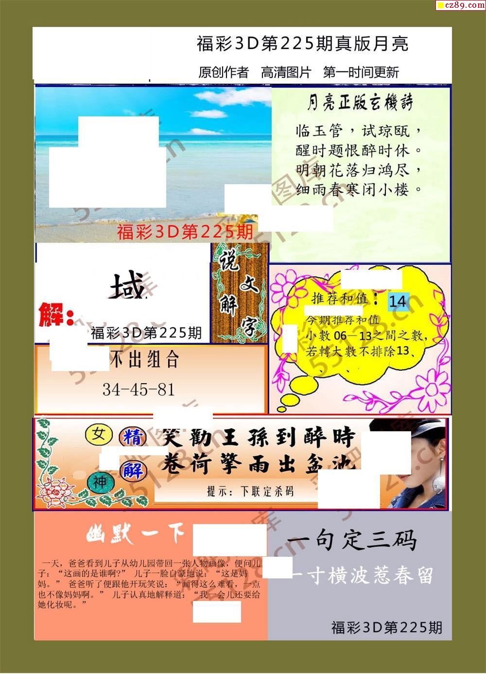 月亮2022年225期福彩3d玄机图谜