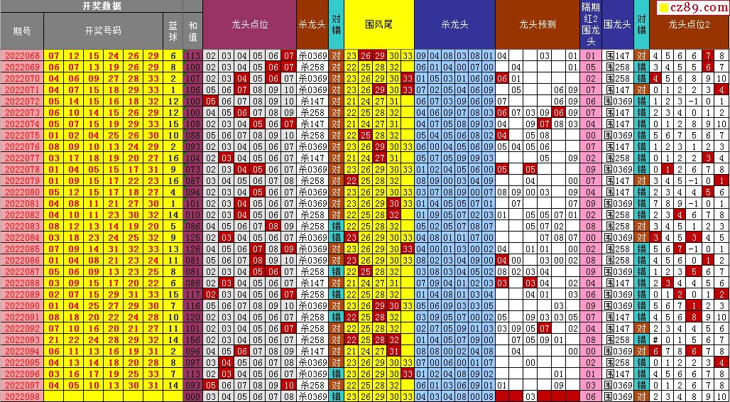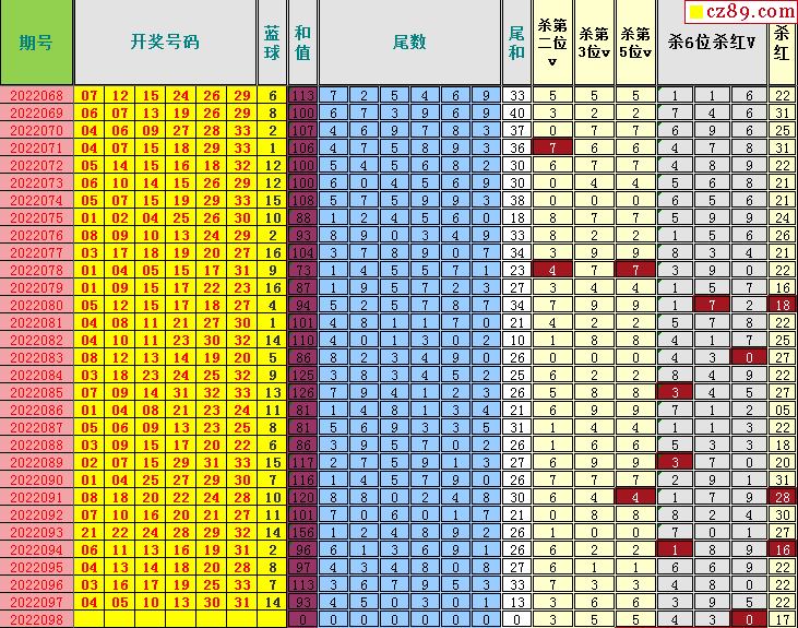 22年098期飞向阳光福彩双色球预测图表汇总