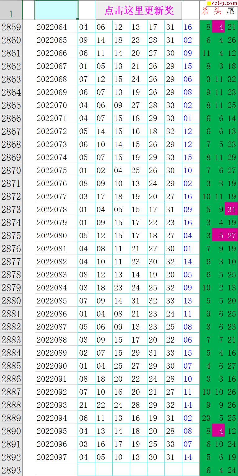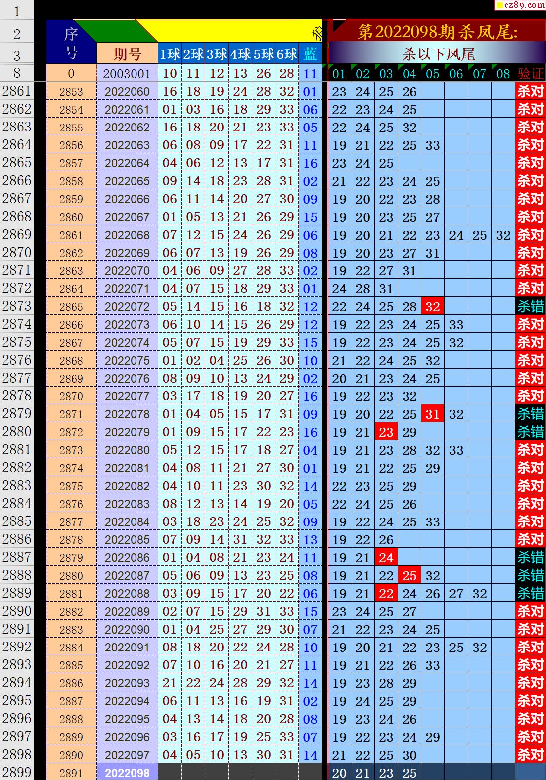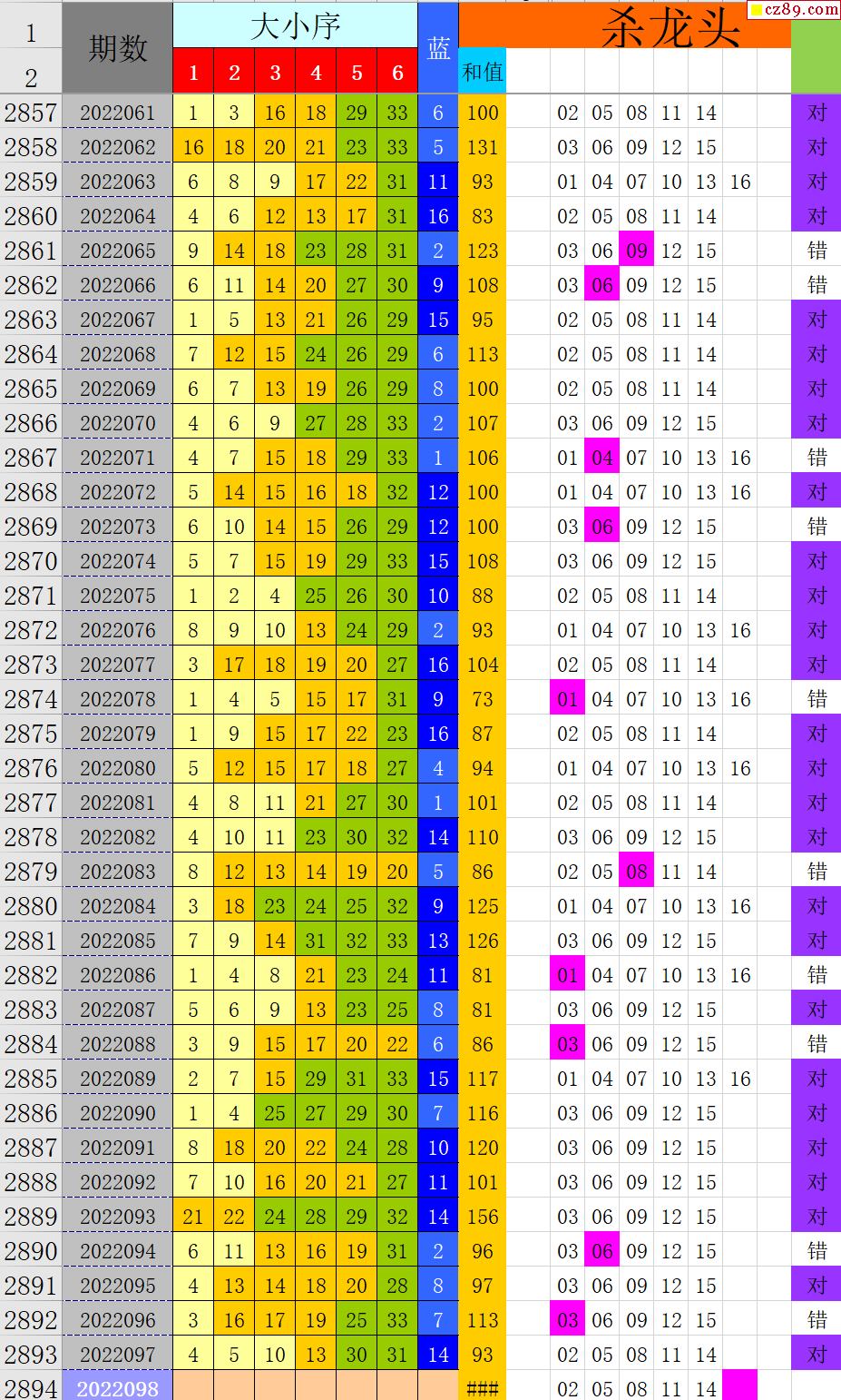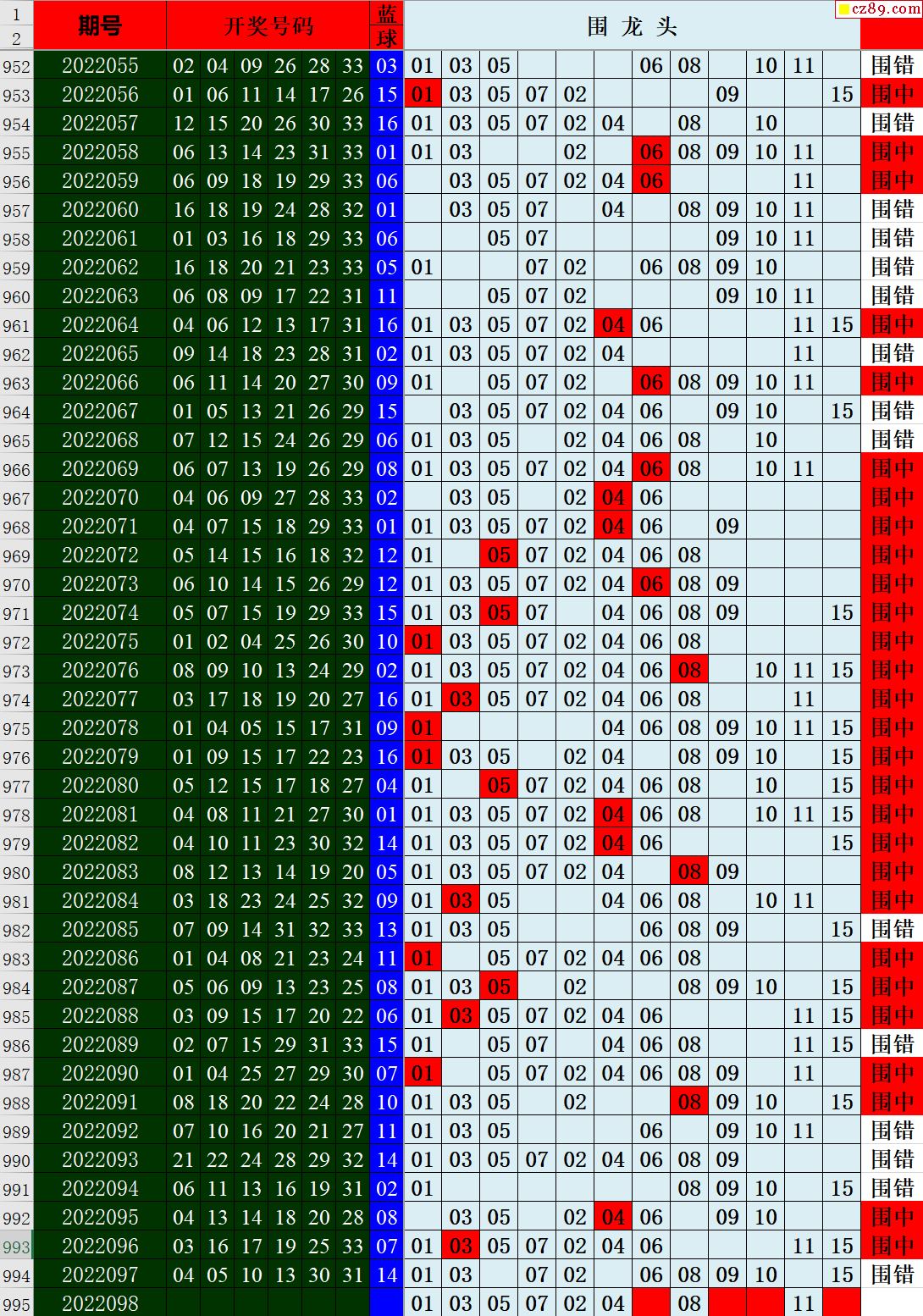 22年098期秋雨龙头凤尾走势图表