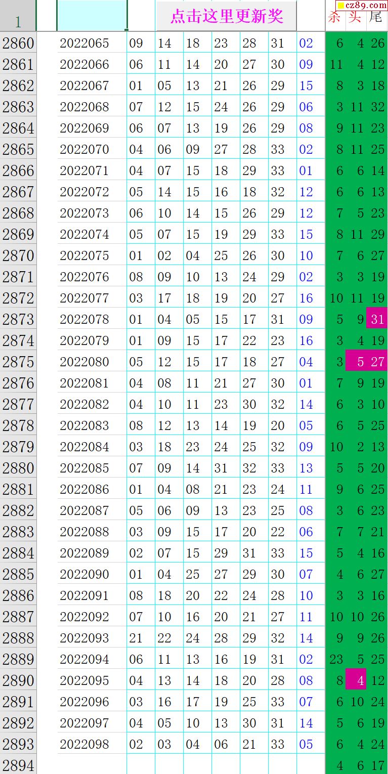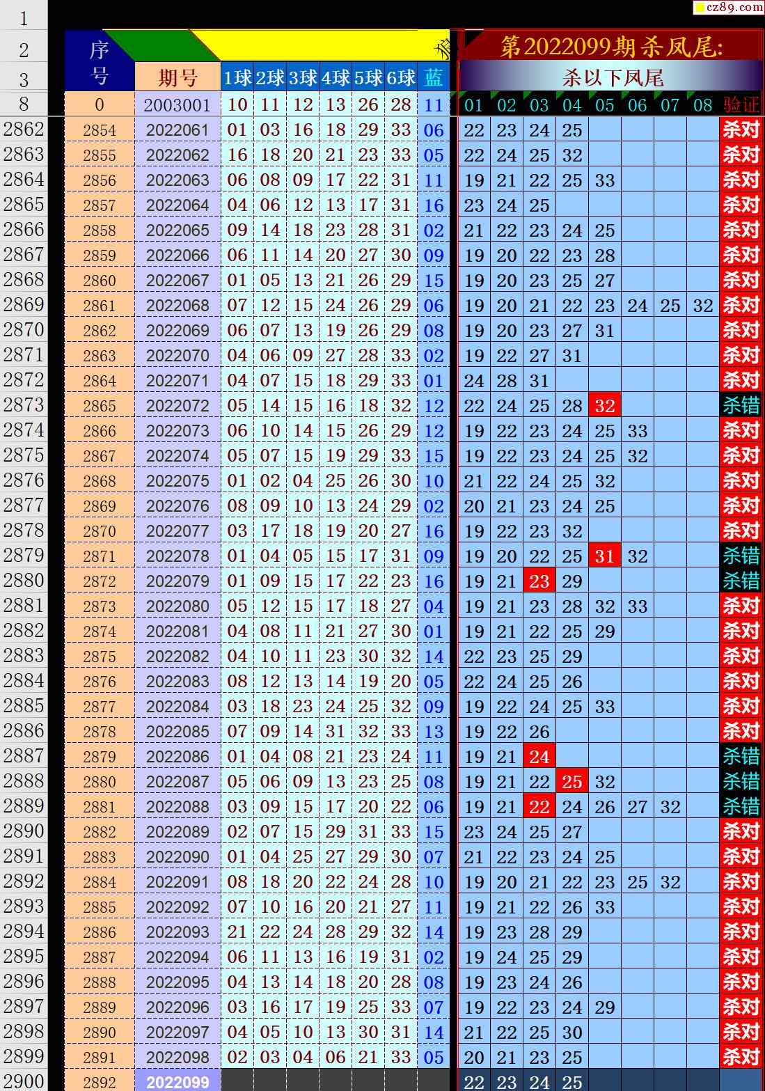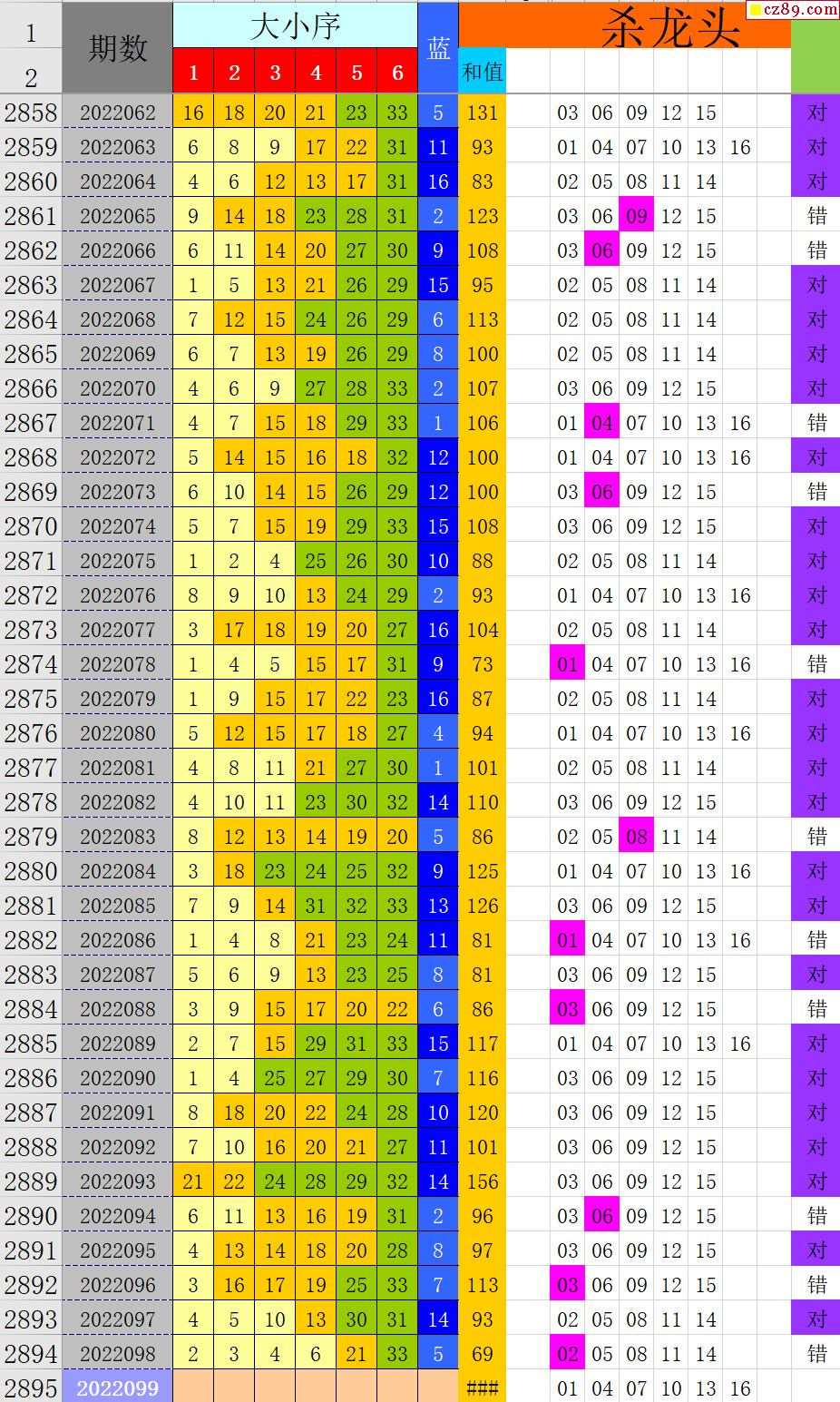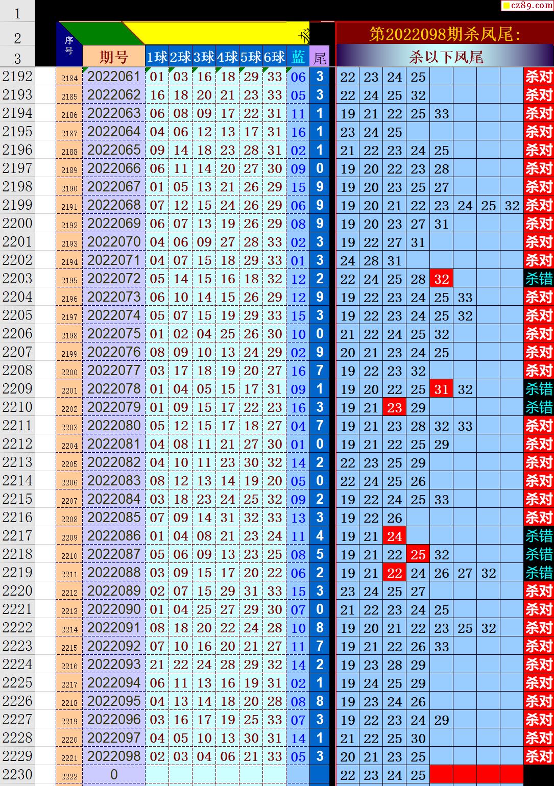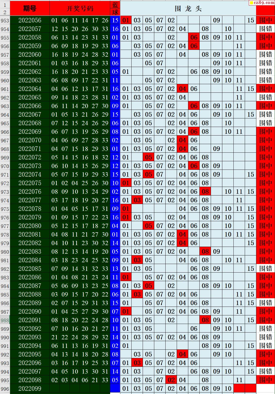 22年099期秋雨龙头凤尾走势图表