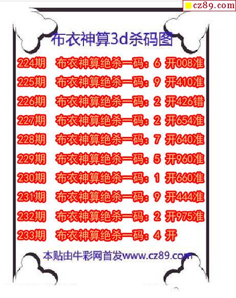 牛彩版3D预测彩报图25年332期打印版