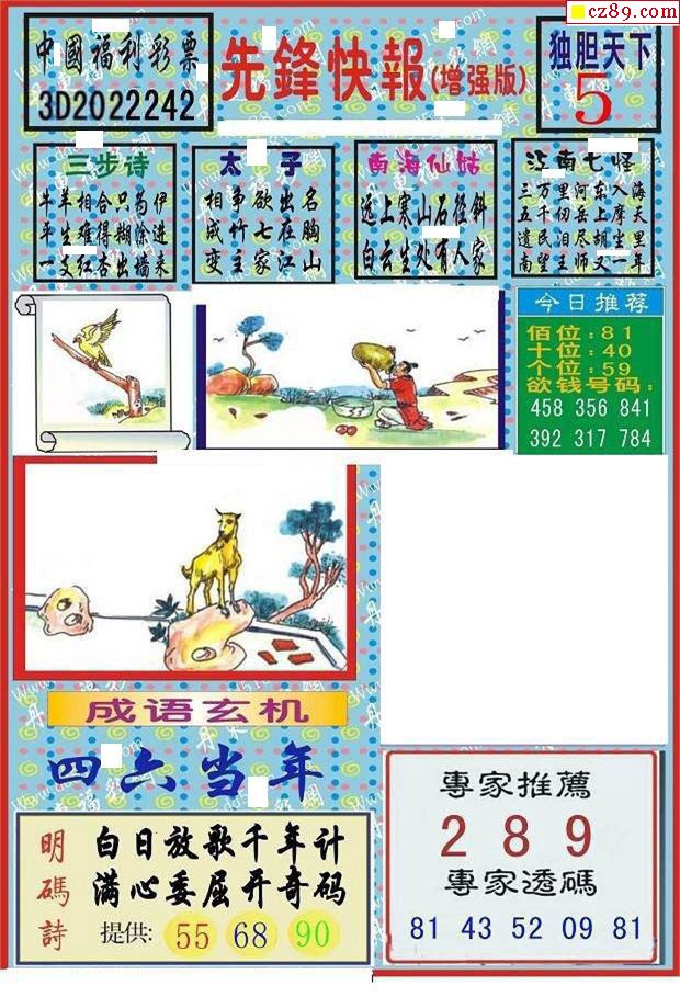 牛彩版3D字谜彩报图25年330期打印版