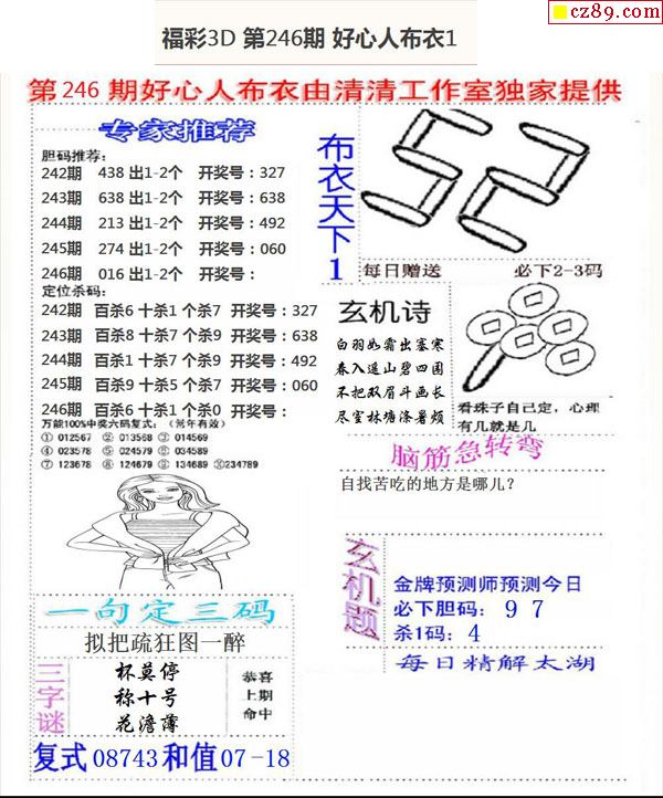 2025332期福彩3D图谜汇总