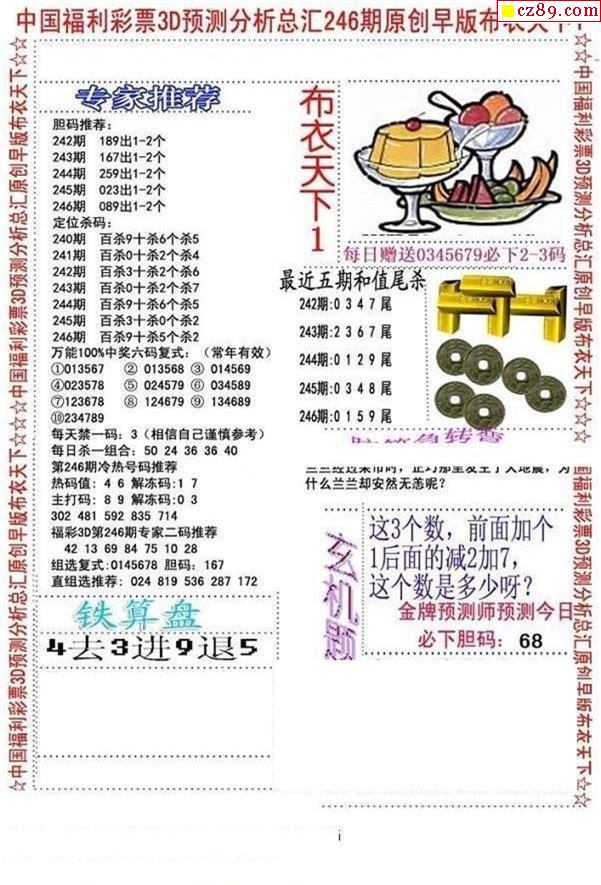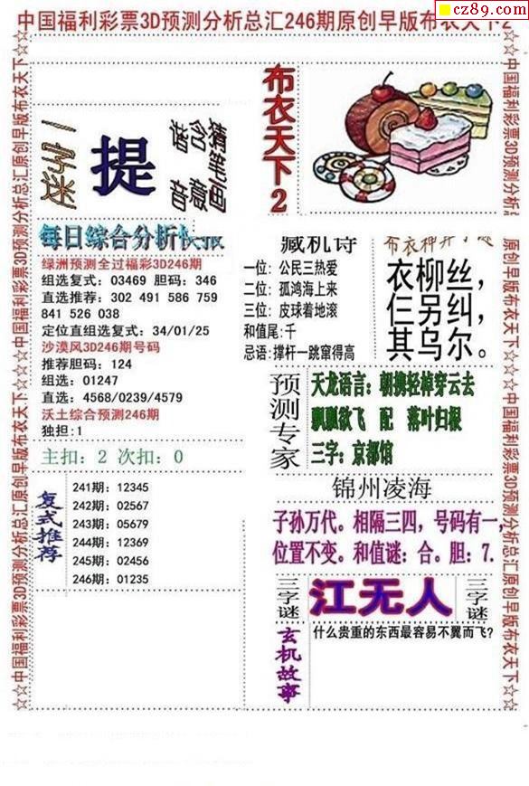 牛彩版3D字谜彩报图25年332期打印版